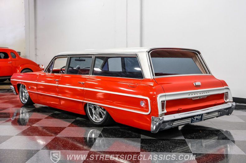 There's a certain magic to classic American wagons, a sense of freedom and nostalgia that only a true icon can deliver. Imagine loading up your family or friends, windows down, classic tunes on the radio, and the open road stretching out before you. If you've been dreaming of an attention-grabbing classic with modern performance touches, the 1964 Chevrolet Impala Wagon is calling your name. Finished in a striking Red with a Silver roof, complemented by chrome accents and tinted windows, this icon is built to impress.