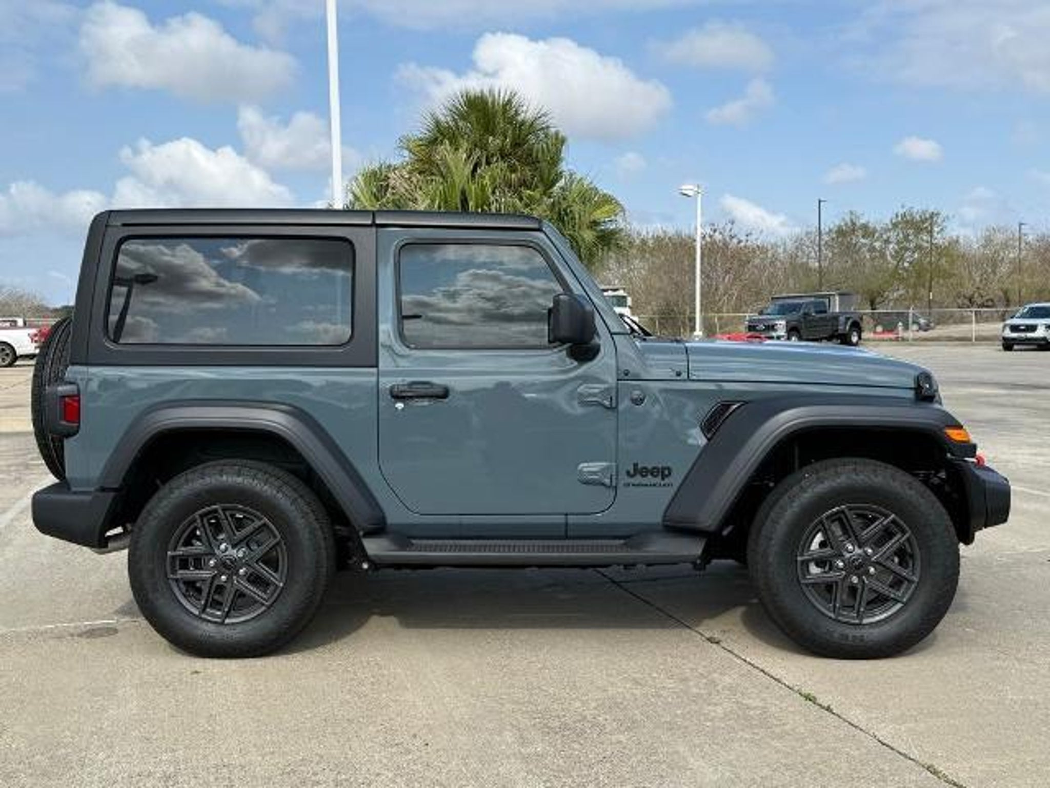 Anvil Clear Coat 2024 Jeep Wrangler Sport S 4WD 8-Speed Automatic 2.0L I4 DOHC This vehicle comes equipped with the following features and options: Quick Order Package 22S Sport S (Wheels: 17 x 7.5 Gray), 110 MPH Vehicle Max Speed Calibration, 3.45 Overall Top Gear Ratio, 4-Wheel Disc Brakes, 8 Speakers, ABS brakes, AM/FM radio: SiriusXM with 360L, Apple CarPlay/Android Auto, Auxiliary Battery, Black 3-Piece Hard Top, Brake assist, Cloth Low-Back Bucket Seats, Compass, Delay-off headlights, Driver door bin, Driver vanity mirror, Dual front impact airbags, Dual front side impact airbags, Electronic Stability Control, Freedom Panel Storage Bag, Front anti-roll bar, Front Bucket Seats, Front Center Armrest w/Storage, Front fog lights, Front reading lights, Integrated roll-over protection, Low tire pressure warning, MOPAR Hardtop Headliner, No Soft Top, Non-Locking Fuel Cap w/o Discriminator, Normal Duty Suspension, Occupant sensing airbag, Outside temperature display, Overhead airbag, ParkView Rear Back-Up Camera, Passenger door bin, Passenger vanity mirror, Power steering, Radio data system, Radio: Uconnect 5 w/12.3 Display, Rear anti-roll bar, Rear reading lights, Rear Window Defroster, Rear Window Wiper/Washer, Speed control, Start-Stop Dual Battery System, Steering wheel mounted audio controls, Tachometer, Telescoping steering wheel, Tilt steering wheel, Traction control, Trip computer, Variably intermittent wipers, and Wheels: 17 x 7.5 Black Steel Styled. Odometer is 12057 miles below market average!