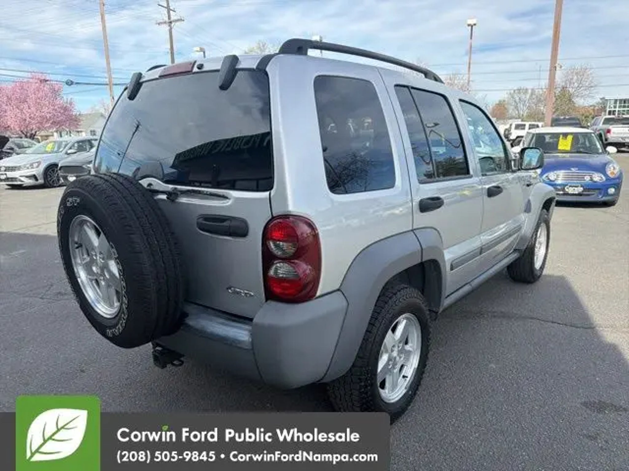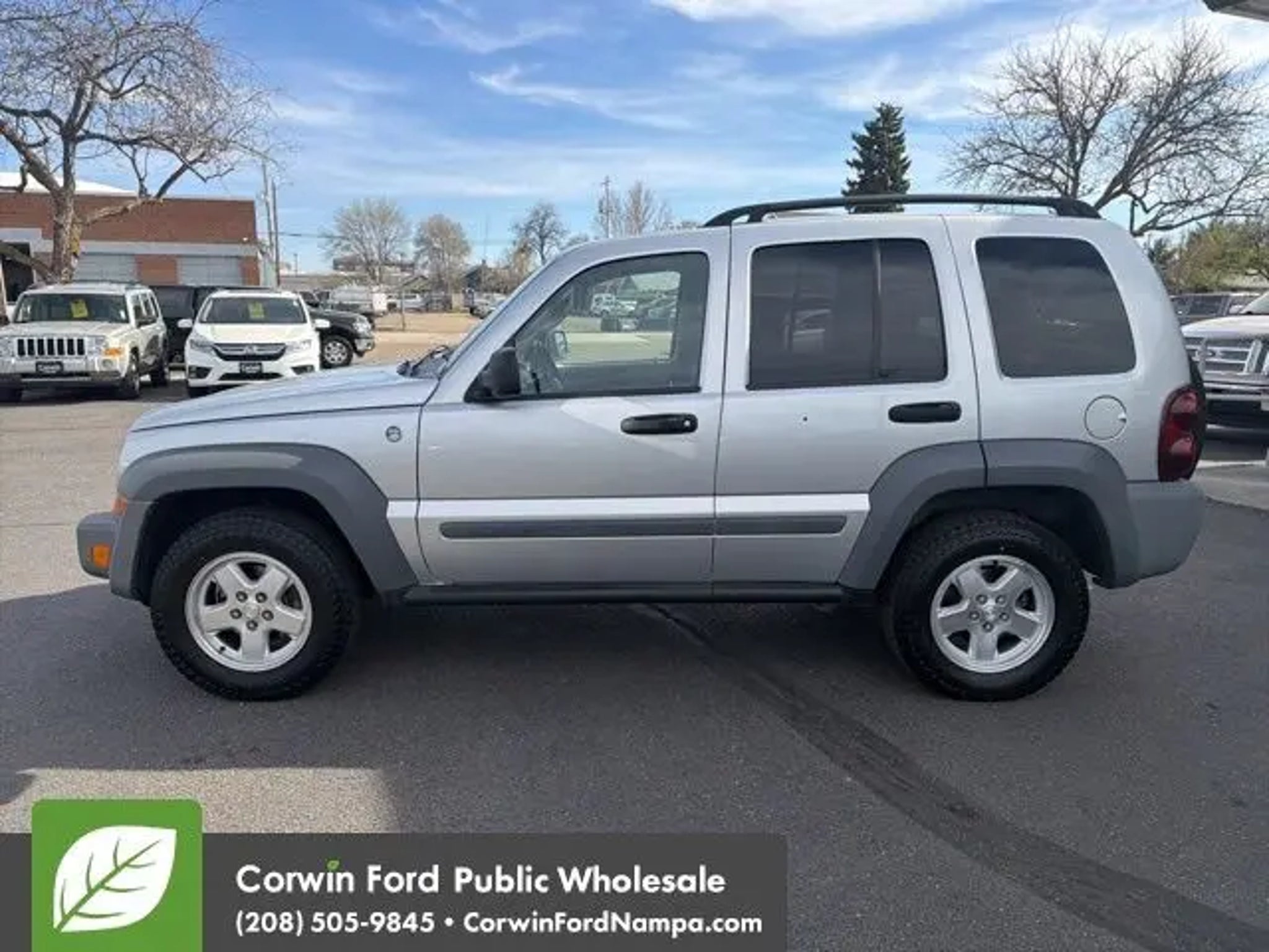Everything you're looking for and more, our Low Mileage 2005 Jeep Liberty Sport 4X4, shown in Bright Silver Metallic, emphasizes adventure and capability! Powered by a 2.8 Liter 4 Cylinder offering plenty of power with a 5 Speed Automatic transmission. Expect a sure-footed ride in this Four Wheel Drive SUV as you score nearly 22mpg on the highway. Turn your style up a notch with our Jeep that boasts roof side rails, fender flares, and great-looking wheels. Our Sport provides ample room for four adults, easy-to-read gauges, and supportive cloth seats. You'll also appreciate power locks/windows, keyless entry, AM/FM/CD audio, and climate control that keeps the cabin an oasis of comfort. Versatile 65/35 split-fold rear seats add to the appeal of our Jeep by adding even more capabilities for adventure! Peace of mind comes standard with our Jeep in its quality build, airbags, LATCH for child seats, and ABS. Our Liberty Sport is a natural-born leader and can't wait to show you what it can do! Save this Page and Call for Availability. We Know You Will Enjoy Your Test Drive Towards Ownership! Corwin Ford Nampa! Friendly service and aggressive pricing is why we are your new and pre-owned vehicle dealer serving, Nampa, Boise, Meridian, Caldwell, Kuna, Eagle, Emmett, Idaho City, Wilder, New Plymouth, Star, Middleton, Weiser, Payette, Horseshoe Bend, Mountain Home, Idaho, and surrounding states.