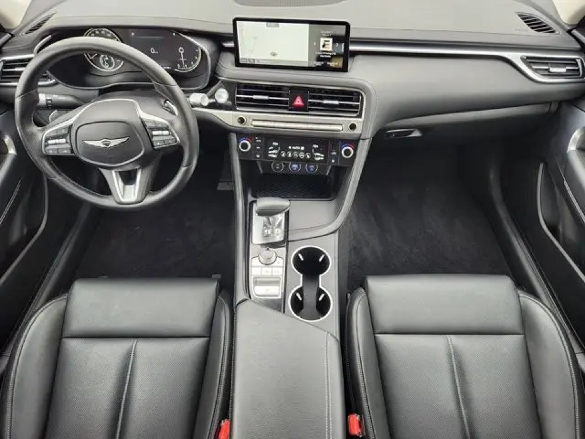 CARFAX One-Owner. Clean CARFAX. G70 2.5T 4-Wheel Disc Brakes, 6 Speakers, ABS brakes, Air Conditioning, Alloy wheels, AM/FM radio: SiriusXM, Android Auto & Apple CarPlay, Anti-whiplash front head restraints, Auto High-beam Headlights, Auto-dimming Rear-View mirror, Automatic temperature control, Brake assist, Bumpers: body-color, Delay-off headlights, Driver door bin, Driver vanity mirror, Dual front impact airbags, Dual front side impact airbags, Electronic Stability Control, Emergency communication system: Genesis Connected Services, Exterior Parking Camera Rear, Four wheel independent suspension, Front anti-roll bar, Front Bucket Seats, Front Center Armrest, Front dual zone A/C, Front reading lights, Fully automatic headlights, Garage door transmitter: HomeLink, Heated door mirrors, Heated front seats, Heated Multi-Adjustable Front Bucket Seats, Illuminated entry, Knee airbag, Leather steering wheel, Leatherette Seating Surfaces, Low tire pressure warning, Navigation System, Occupant sensing airbag, Outside temperature display, Overhead airbag, Overhead console, Panic alarm, Passenger door bin, Passenger vanity mirror, Power door mirrors, Power driver seat, Power passenger seat, Power steering, Power windows, Radio: AM/FM/SiriusXM/HD Audio System, Rear anti-roll bar, Rear reading lights, Rear seat center armrest, Rear side impact airbag, Rear window defroster, Remote keyless entry, Security system, Speed control, Speed-Sensitive Wipers, Split folding rear seat, Steering wheel mounted audio controls, Tachometer, Telescoping steering wheel, Traction control, Trip computer, Turn signal indicator mirrors, Variably intermittent wipers, Wheels: 19 x 8.0J Fr & 19 x 8.5J Rr Alloy. Recent Arrival!