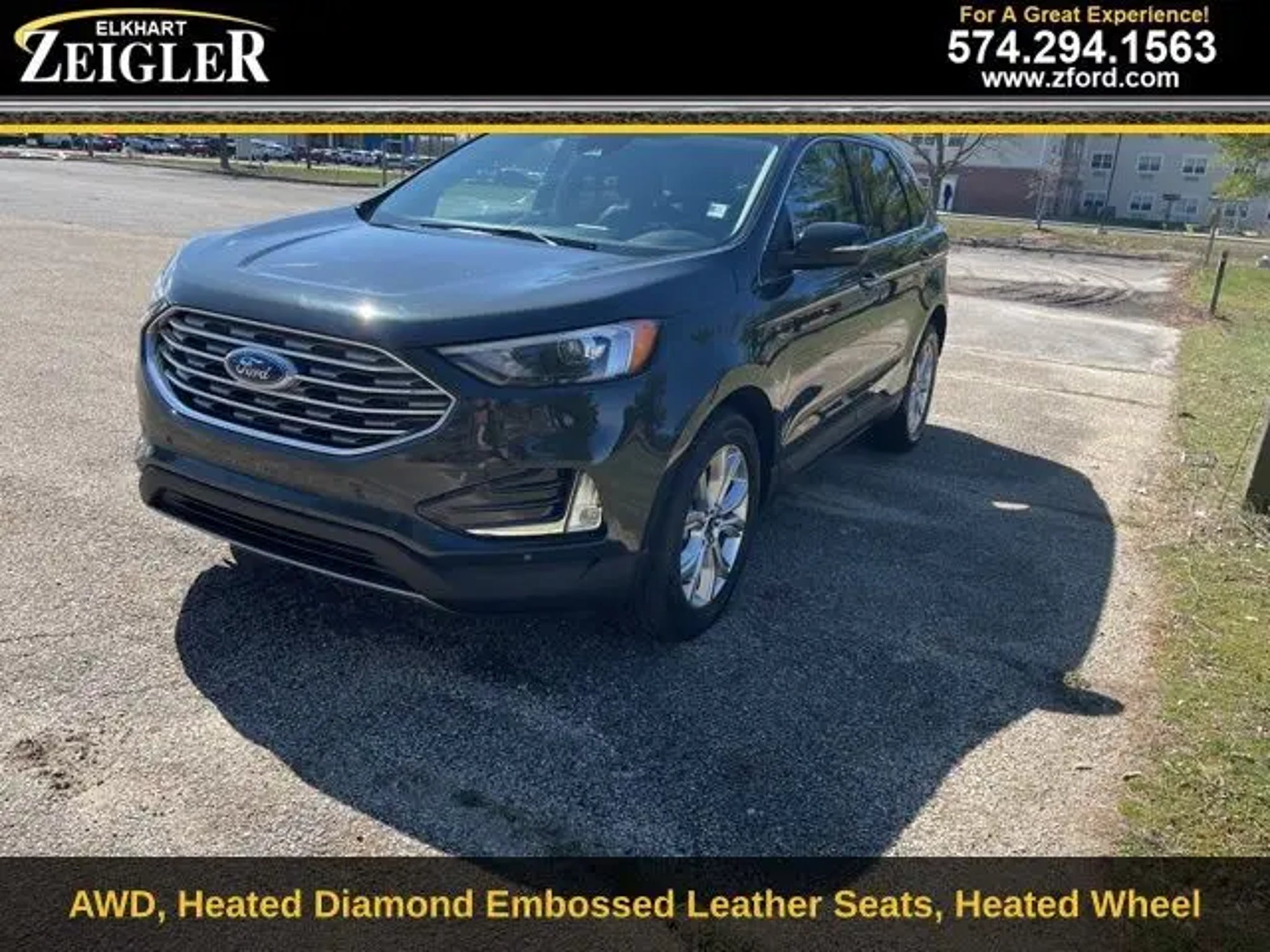 Forged Green Metallic 2023 Ford Edge Titanium LEATHER, PUSH BUTTON START, REAR VIEW CAMERA, REMOTE START, REVERSE SENSING SYSTEM, SYNC, HEATED SEATS, BLUETOOTH, AWD, Edge Titanium, 4D Sport Utility, AWD, Forged Green Metallic, Ebony, Equipment Group 300A. At Zeigler Ford Lincoln of Elkhart, Home of the BEST PRICE GUARANTEE & GUARANTEED FINANCING, we take pride in treating our customers like family, ensuring that your experience is one that you will NEVER forget. Every vehicle has been through a 172-point safety inspection completed by a certified technician and fully detailed. Pre-Owned Ford Vehicles 2018-2017-2016-2015-2014-2013-2012-2011-2010-2009-2008-2007-2006 Ford Escapes, Fusions, Focus, Edges, Flex, F- Series, Heavy Duty Diesel Trucks and more For sale. Take advantage of our VIP internet experience by calling 574-970-5225 to schedule a test drive. Read our customer reviews at www.zeiglerfordelkhart.com/reviews or visit us on the web at www.zford.com, or stop by today, located at 2525 Bypass Rd. Elkhart, IN 46514. We are proud to service customers saving YOU time & money on ANY New or Pre-owned vehicle! Credit Union Financing, Special LOW Interest Rates available. Poor Credit, No Credit, FIRST TIME BUYERS!! Past Bancruptcy... All are welcome to apply for financing TODAY!! See dealer for complete details, dealer is not responsible for pricing errors, all prices, plus tax, title, and plate fees. Serving Michigan and all of our surrounding cities like Goshen, South Bend, Granger, Osceola, Mishawaka, Warsaw, Plymouth, Niles, Union, Edwardsburg, Bristol, Shipshewana, & including the entire Michiana area, and anywhere in the great state of Indiana. Some of our used vehicles may be subject to unrepaired safety recalls. Check for a vehicle's unrepaired recalls by VIN at http://vinrcl.safercar.gov/vin/. Zeigler Ford- FOR A GREAT EXPERIENCE. 21/28 City/Highway MPG