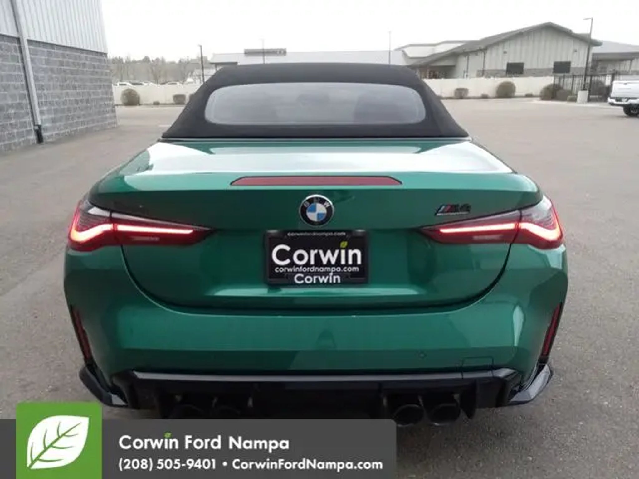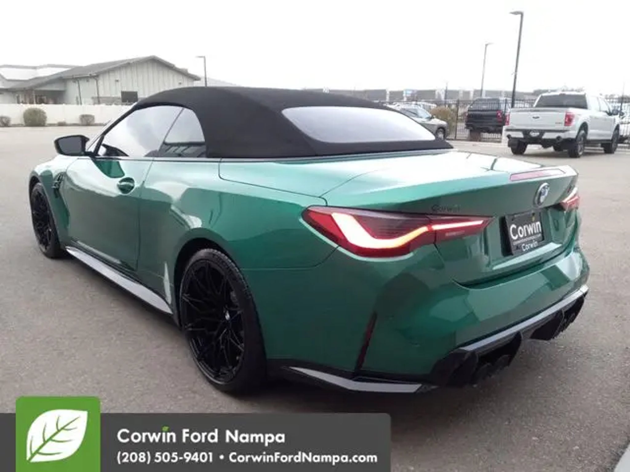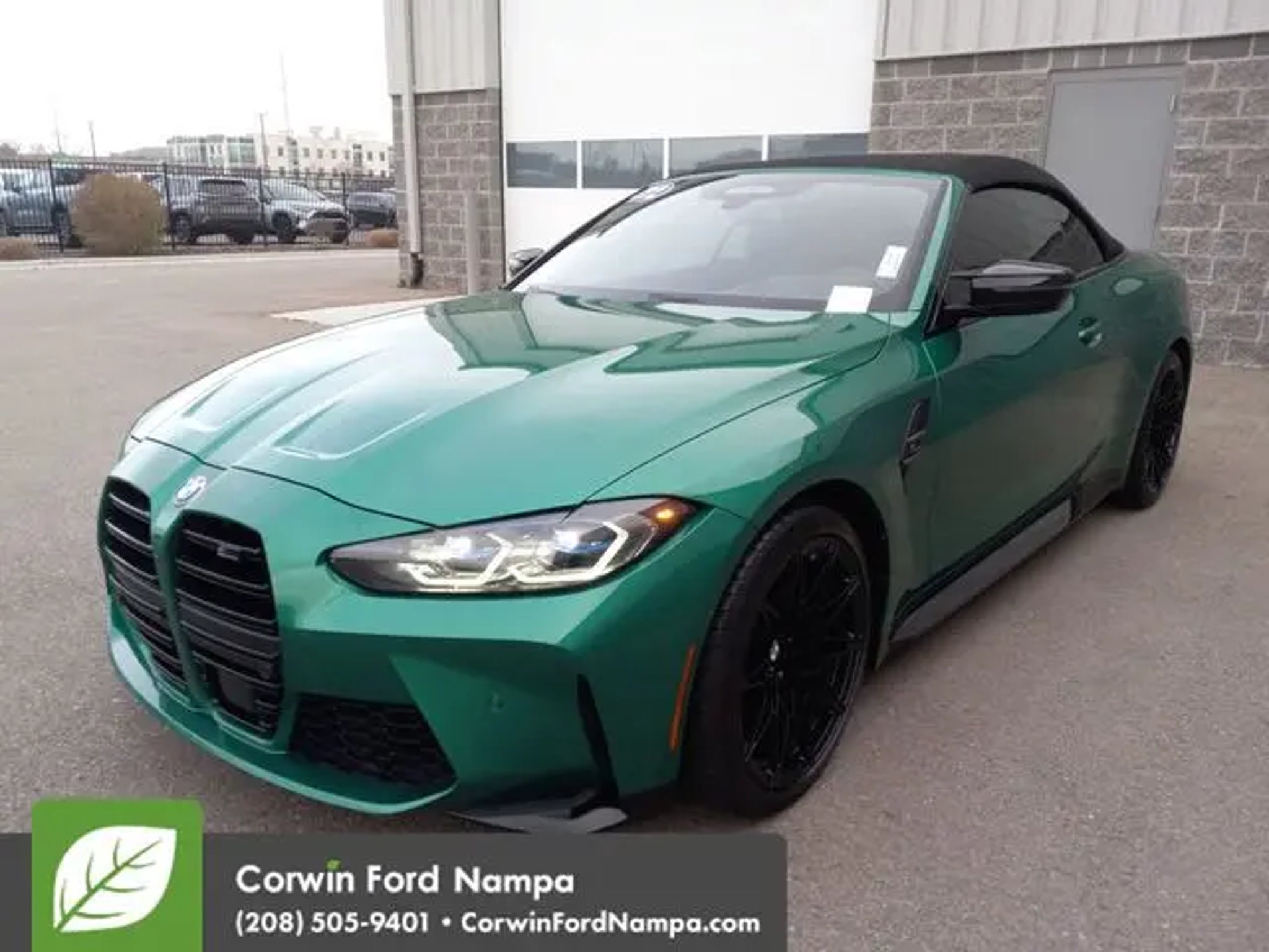 Our powerful Accident Free, One Owner 2022 BMW M Series M4 Competition Convertible delivers precision and thrills in Isle of Man Green Metallic! Motivated by a Twin-TurboCharged 3.0 Liter TwinPower 6 Cylinder supplying 503hp to an 8 Speed Automatic transmission that helps you sprint to 60mph in an incredible 3.8 seconds. This Rear Wheel Drive convertible is also a top-notch track machine with a motorsports-inspired adaptive suspension, active differential, and dynamics control, plus it returns nearly 23mpg on the highway. Our mighty M4 turns heads, too, with LED lighting, optimized aerodynamics, and striking alloy wheels. You can dominate your driving in deluxe comfort with our Competition cockpit. It's sharply focused on going faster with exclusive heated and power-bolstered front M sport seats, a leather-wrapped steering wheel, automatic climate control, and a Live Cockpit Professional dashboard. That transforms the interior into a mobile command post with a 12.3-inch driver display, a 10.25-inch central display, voice recognition, an iDrive controller, full-color navigation, Android Auto®/Apple CarPlay®, Bluetooth®, and Harman Kardon audio. The BMW Active Driving Assistant is on board for peace of mind with a blind-spot monitor, forward collision warning, lane-departure alert, a backup camera, and more. Our fantastic M4 Competition is for the fearless! Save this Page and Call for Availability. We Know You Will Enjoy Your Test Drive Towards Ownership! Corwin Ford Nampa! Friendly service and aggressive pricing is why we are your new and pre-owned vehicle dealer serving, Nampa, Boise, Meridian, Caldwell, Kuna, Eagle, Emmett, Idaho City, Wilder, New Plymouth, Star, Middleton, Weiser, Payette, Horseshoe Bend, Mountain Home, Idaho, and surrounding states.