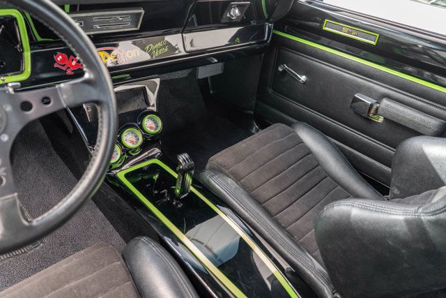 *1971 Dodge Dart Demon* These days when you say Dodge Demon it evokes the sight of a drag-strip focused Challenger Hellcat, but this isn’t Dodge’s first use of the name. In 1971, Dodge’s version of the Plymouth Duster came out, named the Dart Demon. With aggressive, sporty matte black accents and bodywork, the Demon looked like no other Dart and was quite uncommon for the era. This 1971 Dodge Dart Demon is an exciting example that has been comprehensively restored during a 4 ½ year rotisserie restoration and upgraded for improved drivability, while keeping the original muscle car spirit. Finished in an eye-popping shade of Sublime Green with a matte black hood, window surrounds and door topper, the car looks exceptional - and period correct. Really, the only thing on the exterior that gives away that the car is hiding something underneath are the American Racing BOSS TT 5-spoke wheels with Wilwood disc brakes at all four corners - something a Demon never would have originally had. Swing open the driver’s door and you’re met by an interior that, once again, has been significantly improved over a stock 1970s Dodge interior. In place of the upright vinyl seats, nicely bolstered bucket seats with vinyl and alcantara seats have been installed in front, with matching upholstery in the rear. The dashboard, door cards and center console are finished in black with exterior-color-matched Sublime Green accents throughout. In front of the driver sits a GT Grant 3-spoke steering wheel with Autometer gauges in front of the driver, with a triple gauge pod off to the lower right side. Under the hood sits a new 340ci V8 crate engine that produces a claimed 465 horsepower. Although the standard Demon also would have been equipped with a 340ci V8, this example benefits from significantly more power and numerous sought after upgrades. A set of ceramic coated headers and dual exhaust make the car sound fantastic, while a Be Cool aluminum radiator with Spal electric fan help it stay right at operating temperature, regardless of weather. This then sends power through a 727 automatic transmission with B&M shifter, through a carbon fiber drive shaft to the rear wheels. To help the car handle as good as it goes, a tubular K-member up front along with rack and pinion steering and tubular control arms are paired with coilover shocks, while in the rear, Detroit Speed leaf springs and rear axle help put the power down. This Dodge Dart Demon represents an outstanding opportunity to get behind the wheel of a classic American muscle car that is a bit different from the typical Camaros and Mustangs. From its striking color, to the well prepared underpinnings, this Dart Demon will be an exciting and dependable car for all of your summer cruising needs. *Key Features* * 340ci V8 Crate Engine * 465 Horsepower * Ceramic Coated Headers * Edelbrock Air Filter * Dual Rear Exhaust * Be Cool Radiator * Spal Electric Fans * 727 Torqueflite Gearbox * B&M Shifter * Carbon Fiber Driveshaft * Suspension Upgrades * Front Tubular K-Member * Rack and Pinion Steering * Upper/Lower Tubular Control Arms * Coilover Front Shocks * Detroit Speed Rear Leaf Springs * Custom Rear Axle * Wilwood Disc Brakes * Stainless Lines * American Racing BOSS TT 5-Spoke Wheels * Custom Interior * Vinyl and Alcantara Seat Trim * GT Grant * Autometer Gauges * Sound Deadening For more information on this 1971 Dodge Dart Demon or any of our High-Performance, Luxury, Exotic, Classic, and Special Interest cars always in stock, contact one of our friendly and knowledgeable sales consultants or always feel free to drop by our 40,000+ sq ft of Indoor Showrooms in Bellevue, WA - Home of an Exciting Inventory of Luxury, Exotic, High Performance and Collectible Automobiles. Nobody Has What We Have!