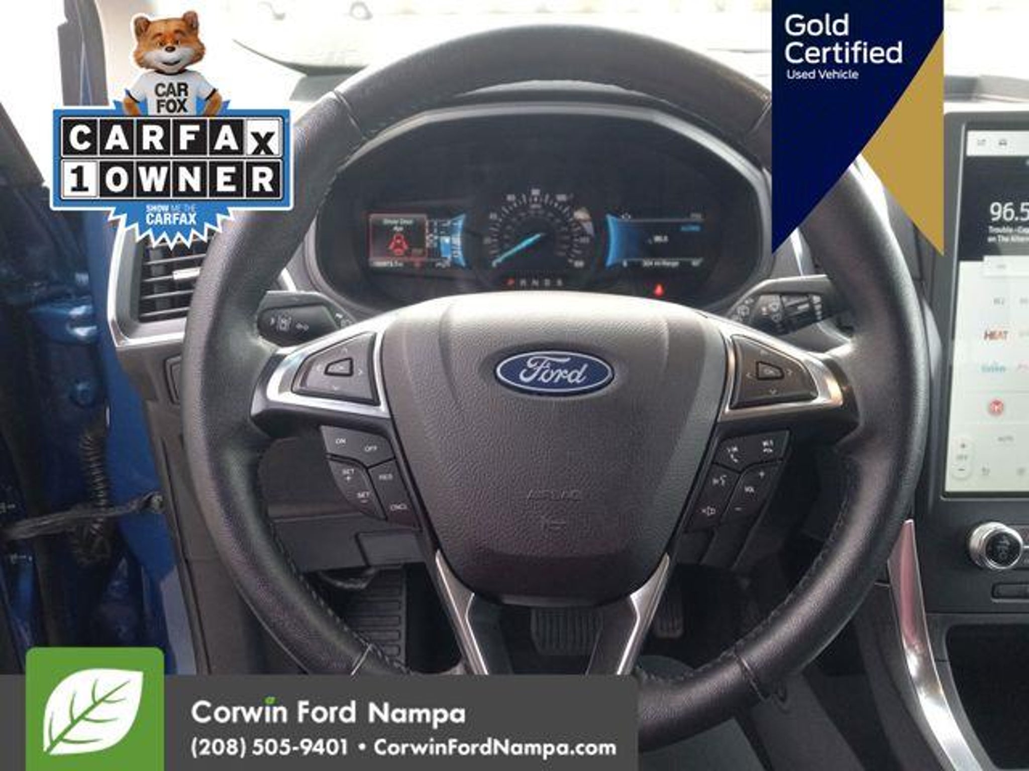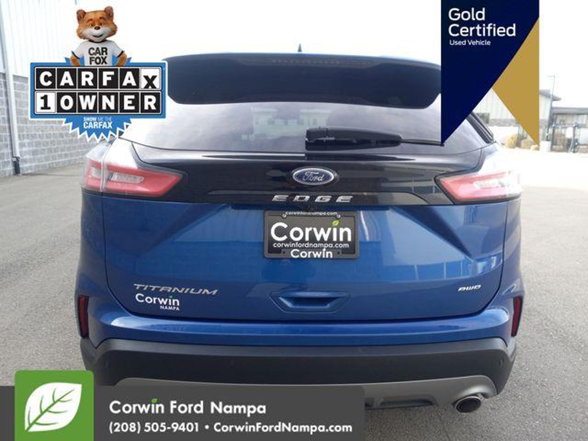 2024 Ford Edge Titanium Available at Corwin Ford Nampa located in the Idaho Center Auto Mall. Priced below KBB Fair Purchase Price! CARFAX One-Owner. AWD. Certified. 2024 Ford Edge Titanium AWD EcoBoost 2.0L I4 GTDi DOHC Turbocharged VCT Blue Metallic 21/28 City/Highway MPG Ford Gold Certified Details: * Vehicle History * and 22,000 FordPass Rewards Points to use toward first two maintenance visits * Roadside Assistance * Powertrain Limited Warranty: 84 Month/100,000 Mile (whichever comes first) from original in-service date * Warranty Deductible: $100 * Limited Warranty: 12 Month/12,000 Mile (whichever comes first) after new car warranty expires or from certified purchase date * 172 Point Inspection * Transferable Warranty Corwin Ford Nampa! Based upon current new inventory shortages, deals subject to dealer approval based upon trade, loyalty, and proximity to dealership. Friendly service and aggressive pricing is why we are your new and pre-owned vehicle dealer serving, Nampa, Boise, Meridian, Caldwell, Kuna, Eagle, Emmett, Idaho City, Wilder, New Plymouth, Star, Middleton, Weiser, Payette, Horseshoe Bend, Mountain Home, Idaho, and surrounding states. Although every reasonable effort has been made to ensure the accuracy of the information contained on this site, absolute accuracy cannot be guaranteed. This site, and all information and materials appearing on it, are presented to the user as is without warranty of any kind, either express or implied. All vehicles are subject to prior sale. Price does not include applicable tax, title, and $499 Dealer Documentation.