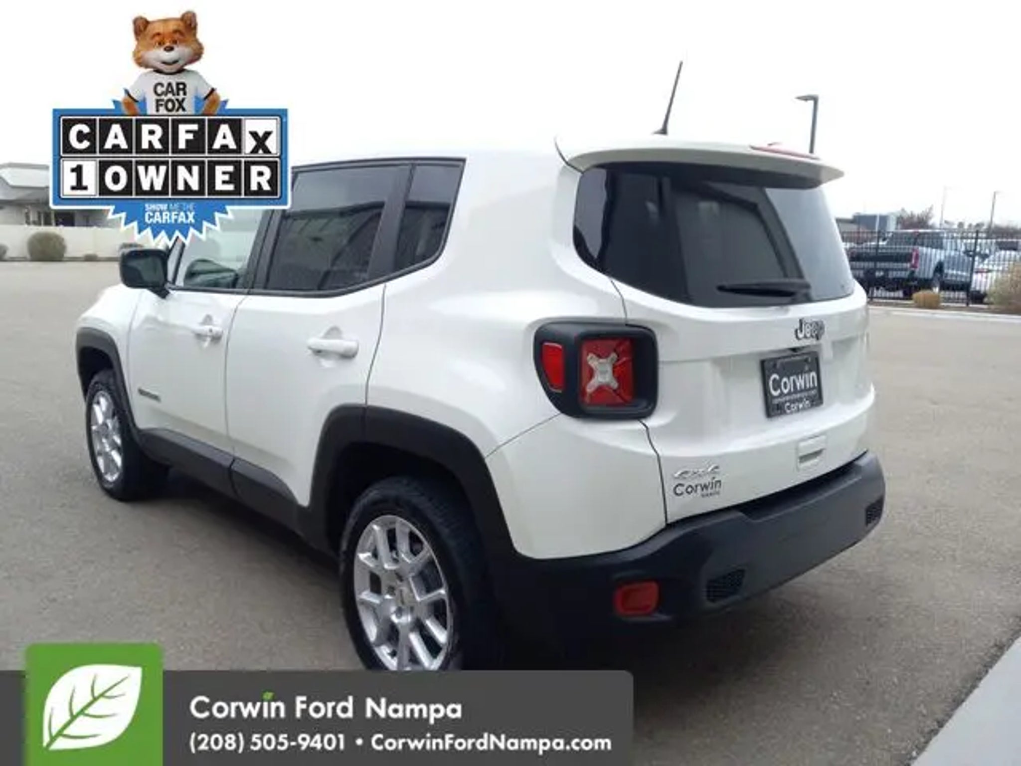 Drive in style with our One Owner 2023 Jeep Renegade Latitude 4X4 that's up to any task in Alpine White! Motivated by a TurboCharged 1.3 Liter MultiAir 4 Cylinder serving up 177hp connected to a 9 Speed Automatic transmission well-known for its ability to explore your world. This Four Wheel Drive SUV is also well-suited for adventure with Selec-Terrain traction management, and it returns nearly 29mpg on the highway. Displaying a distinctive upright stance, our Renegade shows off 17-inch alloy wheels, heated power mirrors, fog lamps, and a bold black grille. Take your seat inside our Latitude cabin to discover it's a versatile and comfortable setting for better driving. Highlights include premium cloth seats, a folding back row, a multifunction steering wheel, dual-zone automatic climate control, and a remote start system. Top tech benefits for our versatile SUV can help you stay on track with full-color navigation, an 8.4-inch touchscreen, Android Auto®/Apple CarPlay®, voice command, Bluetooth®, and a six-speaker audio system. Now gear up and let our Renegade run free! An intelligent array of Jeep safety systems are at your service, starting with forward collision warning, a rearview camera, blind-spot monitoring, automatic braking, lane-keeping assistance, hill-start assistance, and trailer-sway damping. Our Renegade Latitude is a fantastic fit for fun on four wheels! Save this Page and Call for Availability. We Know You Will Enjoy Your Test Drive Towards Ownership! Corwin Ford Nampa! Friendly service and aggressive pricing is why we are your new and pre-owned vehicle dealer serving, Nampa, Boise, Meridian, Caldwell, Kuna, Eagle, Emmett, Idaho City, Wilder, New Plymouth, Star, Middleton, Weiser, Payette, Horseshoe Bend, Mountain Home, Idaho, and surrounding states.