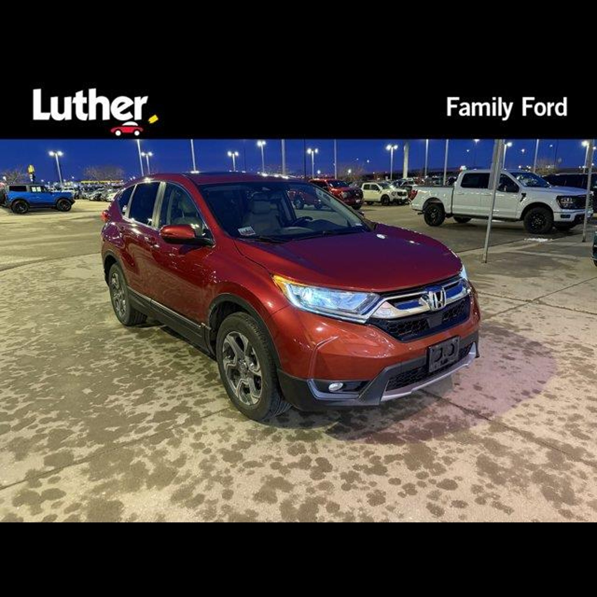 FUEL EFFICIENT 33 MPG Hwy/27 MPG City! Moonroof, Heated Leather Seats, Blind Spot Monitor, Aluminum Wheels, All Wheel Drive CLICK NOW!DISCOVER THE LUTHER ADVANTAGEThe Luther Advantage is a complete and comprehensive package of benefits designed to make buying-and driving-a vehicle from the Luther dealerships a pleasant and convenient experience. From the peace of mind that comes with a 5 Day-500 Mile Return or Exchange Policy, 30 Day 1,500 miles Full Warranty and 60 Day 2,500 miles Limited Powertrain Warranty and Free CARFAX Reports & Clean Title Guarantee on pre-owned vehicles, as well as providing Luther customers with full range of valuable savings at participating Holiday Stationstores including 10 cents off a gallon, $6 for The Works car wash among other advantages and guarantees. As much as we like satisfying customers, we like keeping them even more.WHY BUY FROM US?Wed like to extend a warm welcome to you from our family. We want to ensure that you have a great experience here at Luther Family Ford. Thats why we pledge to treat you with respect, courtesy, fairness and honesty at all times. As a valued customer, you are entitled to our very best, today and every day, along with our promise to do what it takes to make your relationship with us completely satisfying.EXPERTS REPORTEdmunds.com explains The industry-wide transition to electric-assist steering hasnt always been a smooth one. Happily, the CR-Vs setup is a standout in this class, providing proper levels of assist when turning and a generous helping of precision..**As-Is and Specialty Performance Vehicles are excluded from the Luther Advantage Program. Please ask your salesperson for details.Check whether a vehicle is subject to open recalls for safety issues at safercar.govHorsepower calculations based on trim engine configuration. Fuel economy calculations based on original manufacturer data for trim engine configuration. Please confirm the accuracy of the included equipment by calling us prior to purchase.