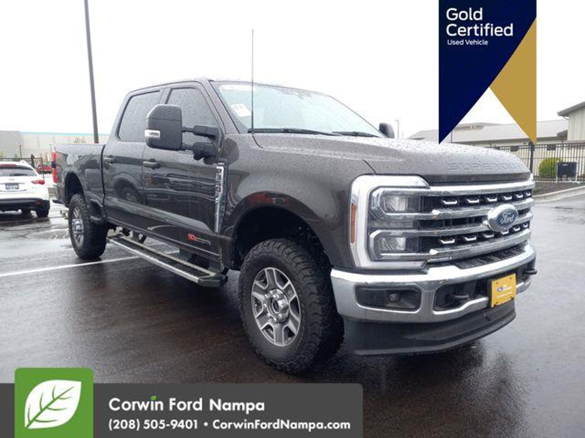 2024 Ford F-350SD Lariat Available at Corwin Ford Nampa located in the Idaho Center Auto Mall. 4WD, ABS brakes, Alloy wheels, Compass, Electronic Stability Control, Front dual zone A/C, Heated door mirrors, Heated front seats, Heated rear seats, Illuminated entry, Low tire pressure warning, Remote keyless entry, Traction control. Certified. 2024 Ford F-350SD Lariat 4WD 6.7L High Output Power Stroke V8 Diesel Darkened Bronze Metallic Ford Gold Certified Details: * Warranty Deductible: $100 * Powertrain Limited Warranty: 84 Month/100,000 Mile (whichever comes first) from original in-service date * Limited Warranty: 12 Month/12,000 Mile (whichever comes first) after new car warranty expires or from certified purchase date * 172 Point Inspection * Vehicle History * and 22,000 FordPass Rewards Points to use toward first two maintenance visits * Roadside Assistance * Transferable Warranty Corwin Ford Nampa! Based upon current new inventory shortages, deals subject to dealer approval based upon trade, loyalty, and proximity to dealership. Friendly service and aggressive pricing is why we are your new and pre-owned vehicle dealer serving, Nampa, Boise, Meridian, Caldwell, Kuna, Eagle, Emmett, Idaho City, Wilder, New Plymouth, Star, Middleton, Weiser, Payette, Horseshoe Bend, Mountain Home, Idaho, and surrounding states. Although every reasonable effort has been made to ensure the accuracy of the information contained on this site, absolute accuracy cannot be guaranteed. This site, and all information and materials appearing on it, are presented to the user as is without warranty of any kind, either express or implied. All vehicles are subject to prior sale. Price does not include applicable tax, title, and $499 Dealer Documentation.