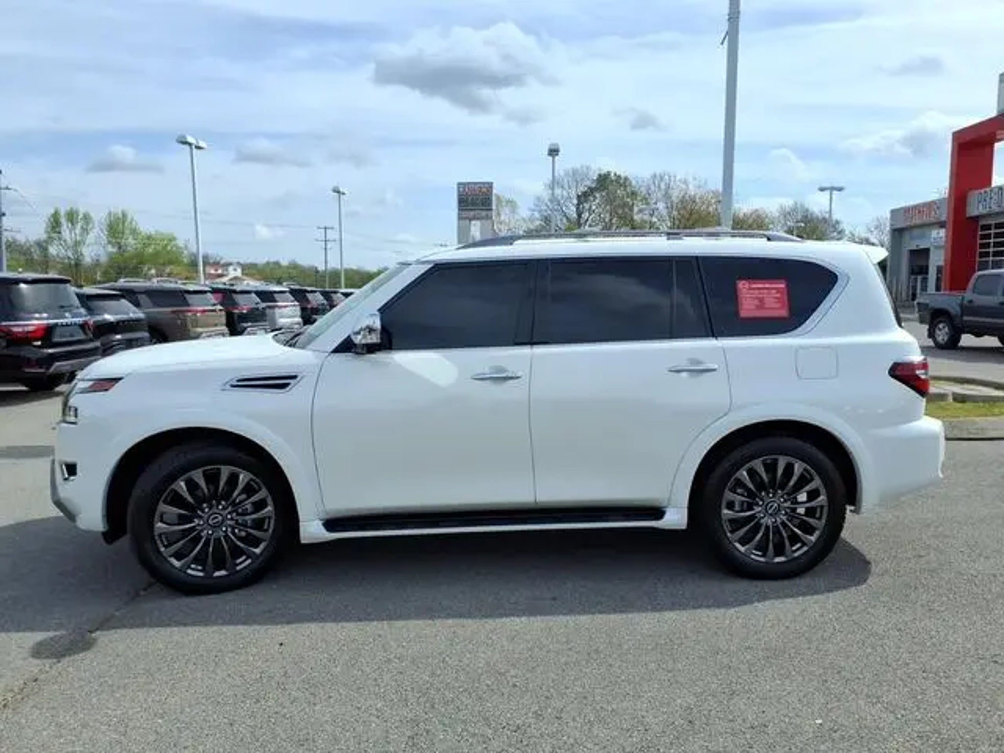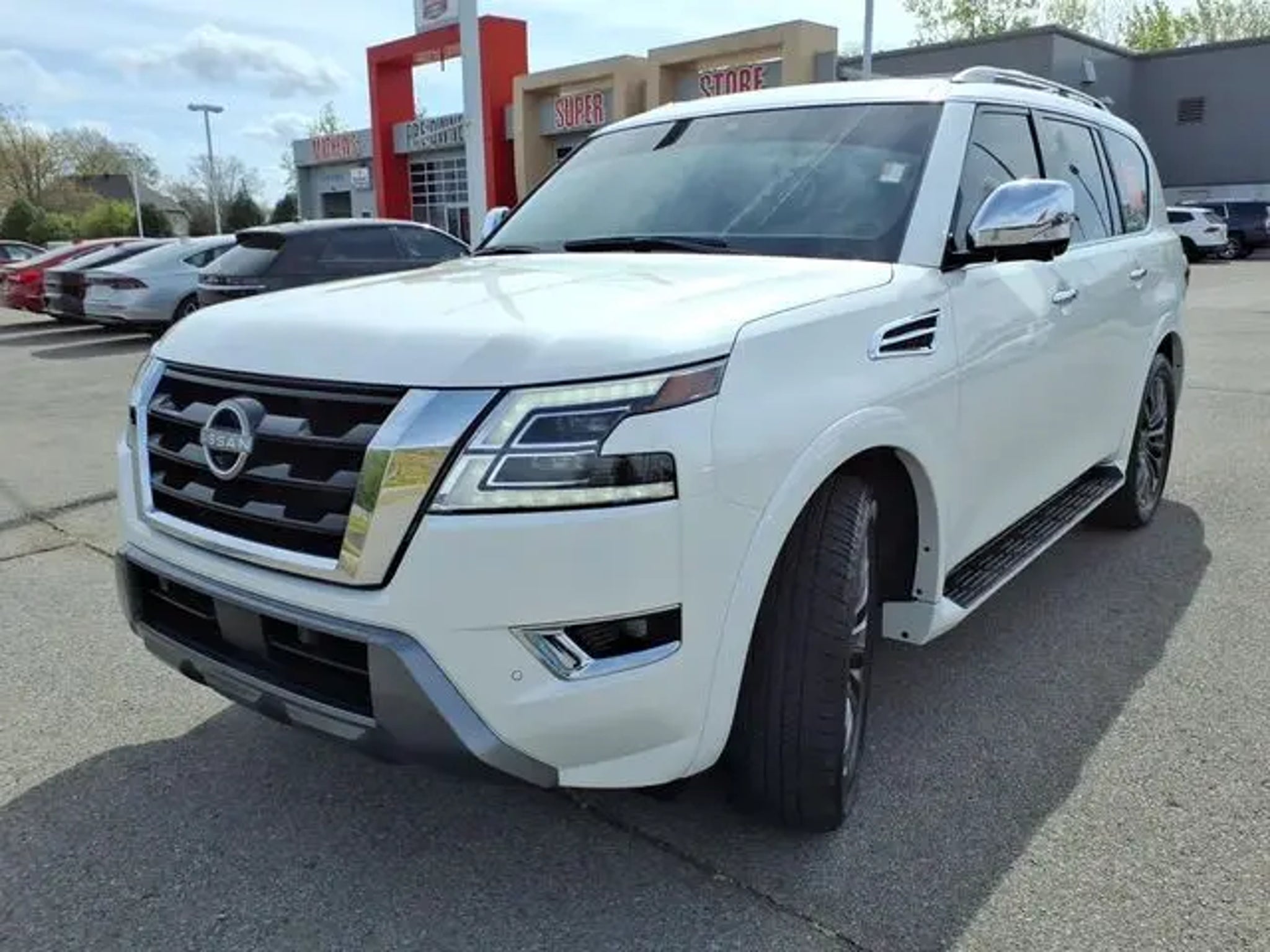 Discover the pinnacle of power, sophistication, and capability with the 2024 Nissan Armada Platinum. This stunning SUV is more than just a vehicle - it's a statement of refined taste and uncompromising performance. Boasting a commanding 5.6L V8 engine that delivers a remarkable 400 horsepower, the Armada Platinum effortlessly conquers any road. Complementing its impressive power is a suite of premium features, including: - Roof Rail Cross Bars - Gun Metal - Cargo Package - 3rd Row Carpeted Floor Mats - Captain Seat - Illuminated Kick Plates - Illuminated Scuff Plate - Captain's Chairs Package This Nissan Armada is more than just a workhorse; it's a true luxury experience. Step inside and be enveloped in the premium Quilted Leather Seat Trim, while enjoying the comfort of Heated Front Bucket Seats and Heated Rear Seats. The available Ventilated Front Seats ensure you stay cool and comfortable, no matter the weather. Elevating your driving experience even further, the Armada Platinum comes equipped with a state-of-the-art Navigation System, a premium 13-speaker audio system, and a Power Moonroof to let the outside in. And with the Nissan USB Charging Cable Set, you can keep all your devices powered and ready to go. But the Armada Platinum isn't just about creature comforts. It's also built to tackle any adventure with confidence, thanks to its 4-Wheel Drive system, Traction Control, and Electronic Stability Control. And with the Exterior Parking Camera Rear, you can navigate even the tightest spaces with ease. As a Nissan Certified pre-owned vehicle, this Armada Platinum comes with an unbeatable peace of mind. Backed by a 167-Point Inspection, Roadside Assistance, and a Transferable Warranty, you can drive with confidence knowing your investment is protected. Experience the pinnacle of power, luxury, and capability with the 2024 Nissan Armada Platinum. Schedule a test drive today and discover why this SUV is the ultimate expression of Nissan's commitment to excellence.