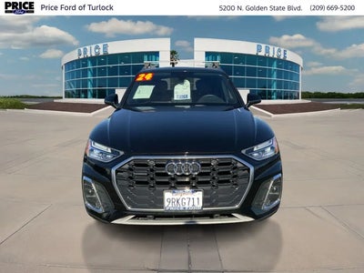 Summary Certified Pre-Owned - Ford Blue Advantage. As a Blue Certified vehicle, this vehicle is held to the highest standards. The vehicle has undergone a 139-point inspection by our factory certified mechanics, comes with a 3 month/4,000 miles comprehensive warranty and 14-day/1,000 mile money back guarantee from date of purchase. Equipment Protect this 2024 Audi Q5 from unwanted accidents with a cutting edge backup camera system. The state of the art park assist system will guide you easily into any spot. The leather seats in the Audi Q5 are a must for buyers looking for comfort, durability, and style. Bluetooth technology is built into the Audi Q5, keeping your hands on the steering wheel and your focus on the road. It is pure luxury with a heated steering wheel. This model has auto-adjust speed for safe following. Start the Audi Q5 from inside with remote start. This vehicle keeps you comfortable with Auto Climate. with XM/Sirus Satellite Radio you are no longer restricted by poor quality local radio stations while driving this Audi Q5. Anywhere on the planet, you will have hundreds of digital stations to choose from. This Audi Q5 is equipped with all wheel drive. Load groceries and much more with ease into it thanks to the power liftgate. Packages Convenience Package: Driver Seat Memory; SiriusXM with 360L; Audi Advanced Key; Auto-Dimming Power Folding Exterior Mirrors. Panoramic Sunroof. Trailer Hitch. Mythos Black Metallic. **Equipment listed is based on original vehicle build and subject to change. Please confirm the accuracy of the included equipment by calling the dealer prior to purchase.** Additional Information Price Ford of Turlock is the newest Ford Dealer located in the heart of the Central Valley and we promise to work the hardest to be your dealer. Once you compare our prices online, you will see we are priced competitively in the market. But more importantly, our pre-owned vehicles have all been serviced by factory trained technicians and passed an extensive pre-owned checklist. All of our pre-owned vehicles come with a complimentary 7-day Money Back Guarantee and all vehicles newer than 10 years old and under 100,000 miles come with a 3mo/3,000 mile Limited Used Vehicle Warranty. If you have any questions about the vehicle, its pricing, finance options, or service contract eligibility, please email us a