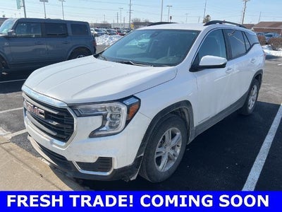 2023 GMC Terrain SLE FWD 1.5L DOHC 9-Speed Automatic Check out all these great options! Driver Convenience Package (8-Way Power Driver Seat Adjuster, Driver & Front Passenger Heated Seats, Dual-Zone Automatic Climate Control, Power Driver Lumbar Control, Remote Start, and Roof-Mounted Luggage Rack Side Rails), Preferred Equipment Group 3SA, Side Blind Zone & Rear Cross Traffic (Lane Change Alert w/Side Blind Zone Alert and Rear Cross-Traffic Alert), Terrain Pro Safety Plus (Adaptive Cruise Control, Outside Heated Power-Adjustable Mirrors, Rear Park Assist, and Safety Alert Seat), 2 USB Data Ports w/Auxiliary Input Jack, 3.47 Axle Ratio, 4-Way Manual Driver's Seat, 4-Way Manual Front Passenger Seat, 4-Wheel Disc Brakes, 4.2 Multi-Color Driver Information Screen, 6 Speakers, 6-Speaker Audio System Feature, ABS brakes, Air Conditioning, Alloy wheels, AM/FM radio: SiriusXM, Auto High-beam Headlights, Auto-dimming Rear-View mirror, Automatic temperature control, Bluetooth? For Phone, Brake assist, Bumpers: body-color, Compass, Delay-off headlights, Driver door bin, Driver vanity mirror, Dual front impact airbags, Dual front side impact airbags, Electronic Stability Control, Emergency communication system: OnStar and GMC connected services capable, Four wheel independent suspension, Front anti-roll bar, Front Bucket Seats, Front Center Armrest, Front reading lights, Fully automatic headlights, Heated door mirrors, Illuminated entry, Low tire pressure warning, Occupant sensing airbag, Outside temperature display, Overhead airbag, Overhead console, Panic alarm, Passenger door bin, Passenger vanity mirror, Power door mirrors, Power Programmable Rear Liftgate, Power steering, Power windows, Premium Cloth Seat Trim, Radio data system, Radio: GMC Infotainment Audio System w/7 Display, Rear anti-roll bar, Rear seat center armrest, Rear window defroster, Rear window wiper, Remote keyless entry, Security system, SiriusXM Radio, Speed control, Speed-sensing steering, Split folding rear seat, Spoiler, Steering wheel mounted audio controls, Tachometer, Telescoping steering wheel, Tilt steering wheel, Traction control, Trip computer, Variably intermittent wipers, Wheels: 17 x 7 Silver Painted Aluminum, and Wireless Apple CarPlay/Wireless Android Auto. CARFAX One-Owner. Clean CARFAX. At Reineke Family of Dealerships, we pride ourselves on delivering a convenient and transparent buying experience. Get your key from Reineke! Please be aware that all listed vehicles are subject to additional applicable sales tax, titling, l