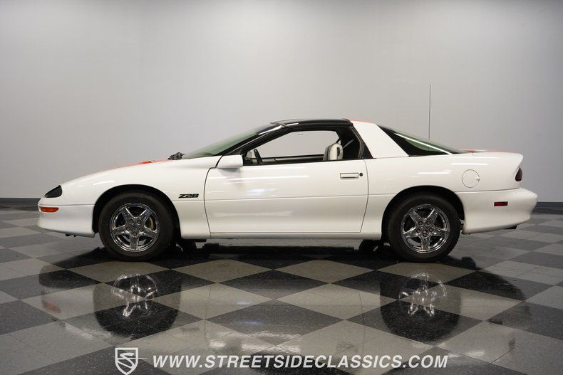 Regarding modern muscle cars, it is hard to beat a well-maintained fourth-generation Camaro for the perfect blend of power and convenience. Add to that a dash of rarity, and suddenly this 1997 Chevrolet Camaro Z/28 30th Anniversary Edition becomes an exceptionally collectible and drivable Pony Car. Decked out in its beautiful Arctic White paint, complemented by a set of full-length orange stripe decals, looks barely broken-in thanks to its hard-to-believe 18,707 actual miles on its odometer. This 30th Anniversary Camaro, configured as a T-top-equipped coupe with an automatic transmission from the factory, is one of 1,246 ever produced, making this pony car a rare steed indeed.