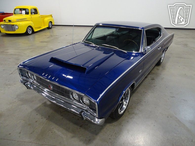 This 1966 Dodge Charger is painted in stunning electric blue with a beefy set of five-spoke alloy wheels. The unique black vinyl interior comes with a floor shifter, power windows, and a Sony AM/FM radio mounted in the glovebox. The interior was uniquely designed with four bucket seats and a center console that runs the length of the cockpit. Stressing the muscle car image, the Charger was only sold with four V-8 engine options. Distinguished by its fastback roofline, ""electric shaver"" front grille, and full width rear taillights this 1966 Dodge Charger is a head turner.