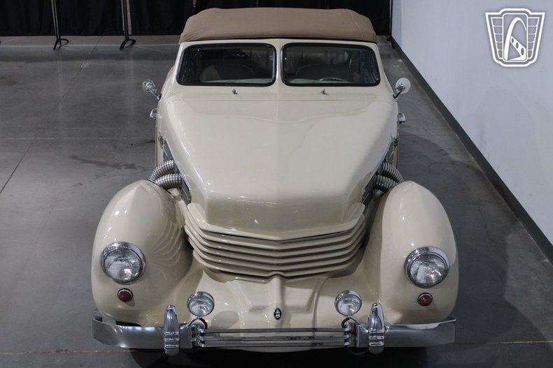 The 1937 Cord, often celebrated for its revolutionary ""coffin nose"" design, was a trailblazer in automotive history, and this replica captures that spirit beautifully. The sleek, aerodynamic lines of the original Cord were ahead of their time, and this convertible pays homage to that legacy with its graceful curves and commanding presence. Under the hood, a robust V8 engine paired with a smooth C-4 transmission delivers a driving experience that is both powerful and effortless, making every cruise a memorable one.
