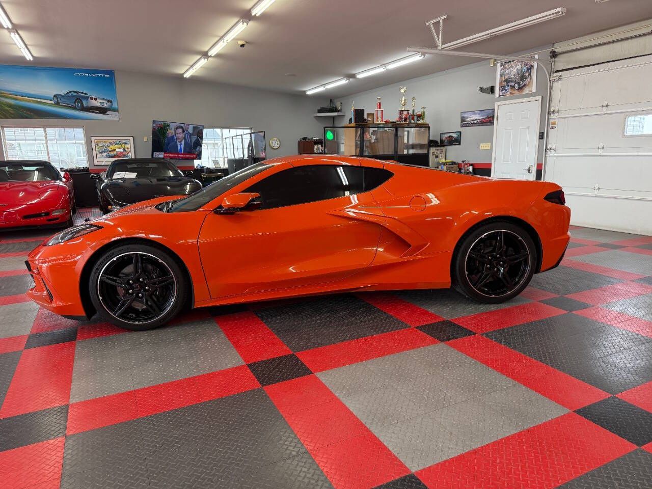 2020 Chevrolet Corvette Stingray 2dr Coupe w/2LT This C8 is a 2020 Chevrolet Stingray 2dr Coupe equipped with a preferred 2LT Trim package, 6.2L 490hp LT2 V8 engine, with an automatic 8 speed transmission. This car has an orange exterior with gray leather and cloth interior. This luxury sports car has only 13,511 miles.