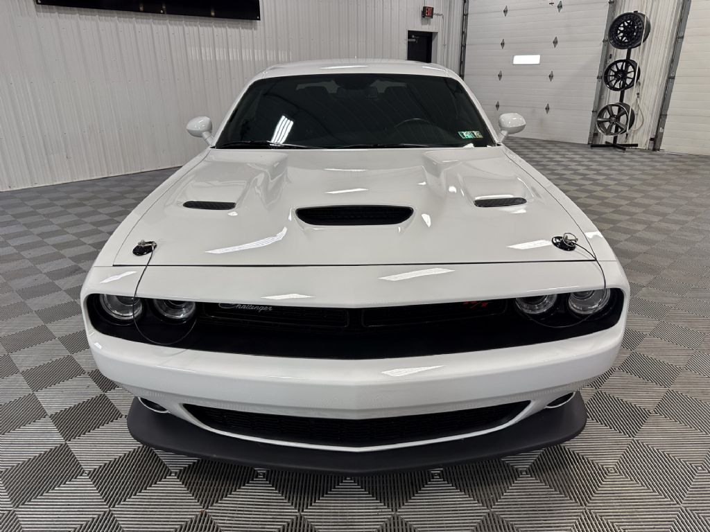 This 2019 Dodge Challenger R/T Scat Pack is a powerful muscle car that combines retro style with modern performance. Dressed in striking White Knuckle exterior paint and featuring a Black interior with cloth performance seats, this Challenger is powered by a 392 HEMI V8 engine producing 485 horsepower. The engine is paired with a 6-speed manual Tremec transmission, ensuring an engaging driving experience.