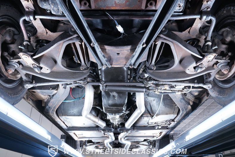 Under the hood, this Corvette packs a punch with a 350 V8 ZZ4 crate motor. Paired with a 4-speed manual transmission, it delivers power to the rear wheels through a 3.70 Posi-traction rear end. The engine bay is clean and well-organized, showcasing the V8's power. A dual exhaust system with factory replacement mufflers provides a throaty growl. The suspension features control arms with coil springs up front and transverse leaf springs in the rear, offering a balance of comfort and performance. Power steering ensures easy maneuverability, while drum brakes provide stopping power.