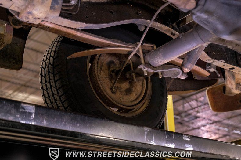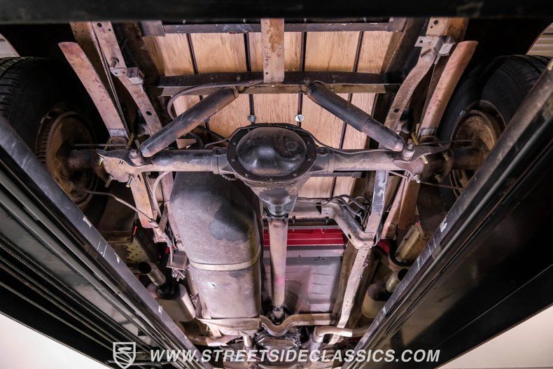 The engine bay houses a 360 V8 engine with an RV cam, a significant upgrade from the original 318. An Edelbrock 4-barrel carburetor feeds the engine while the A727 Torqueflite 3-speed automatic transmission handles gear changes. Power steering eases maneuverability, while power brakes with front discs provide stopping power. A Flowmaster dual exhaust system completes the powertrain upgrades and the suspension features coil springs with shocks up front and a solid axle with leaf springs and shocks in the rear.