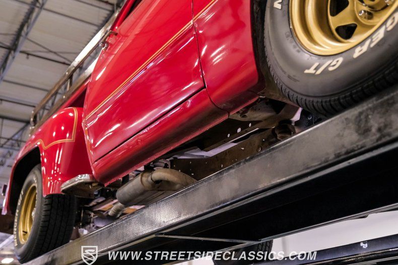 HIGHLIGHTS: 360 V8 Engine (originally 318) Edelbrock 4-Barrel Carburetor RV Cam A727 Torqueflite 3-Speed Automatic Transmission Power Steering Power Front Disc Brakes Flowmaster Dual Exhaust Red Paint w/ Gold Warlock Tribute Decals 15" Wheels in Avenger G/T 235/70R15 Tires Real Wood Bed Sliding Rear Window New Front Bumper Black Interior with Bench Seat Aftermarket Steering Wheel Dual AM/FM Radio with USB and AUX Ports