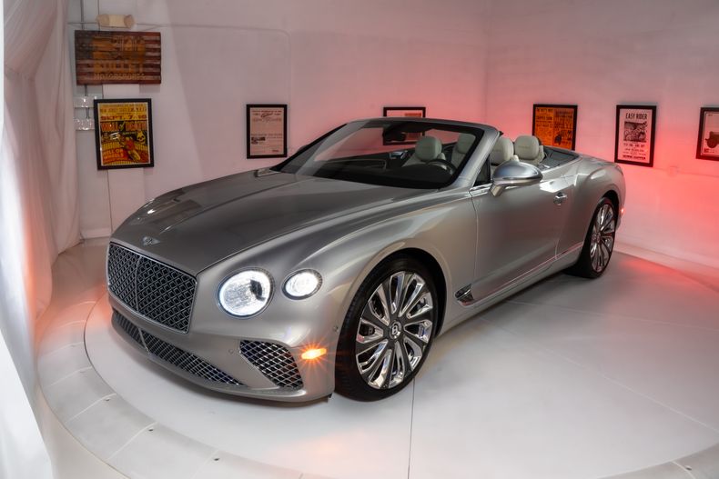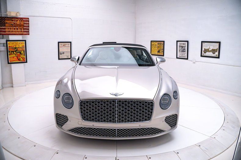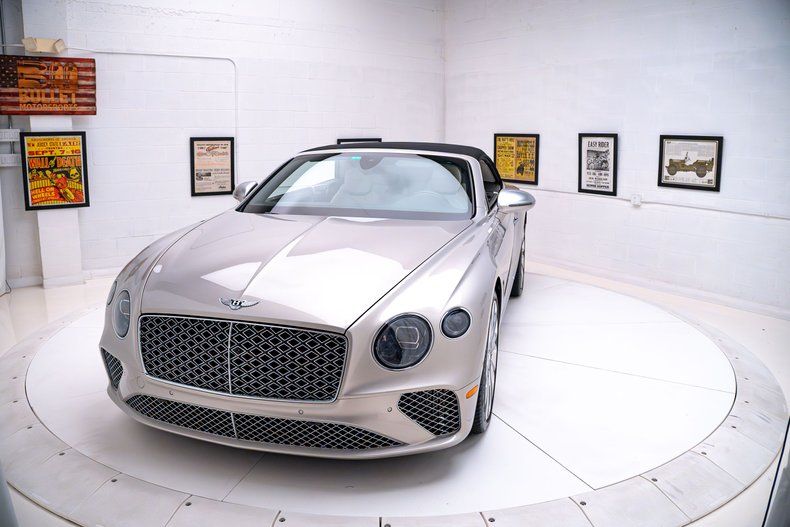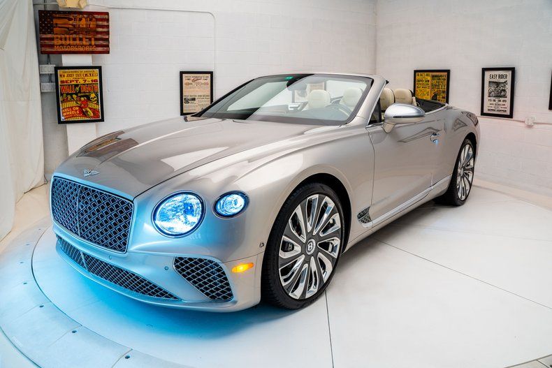 This 2021 Bentley Continental GT V8 Mulliner convertible is powered by a twin-turbocharged 4.0-liter V8 that drives all four wheels through an eight-speed dual-clutch automatic transmission and an Active All-Wheel-Drive system. Finished in Silver Storm with a black top, the car features a four-place cabin with quilted Linen leather upholstery, heated and ventilated front seats, a quilted top boot, a Bang & Olufsen sound system, and a rotating display. The car rides on 22 10-spoke Mulliner wheels as well as an air suspension and is outfitted with LED lighting, Mulliner-specific trim, and an integrated radar system. The car was acquired new by the owner and now has 6,500 miles.