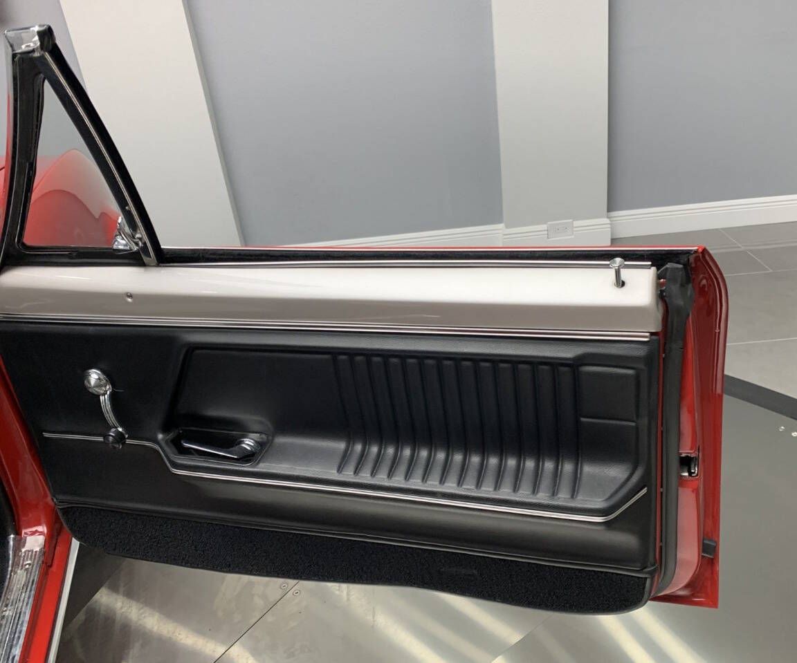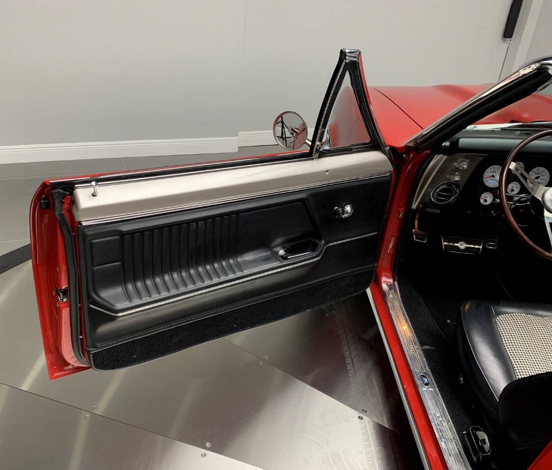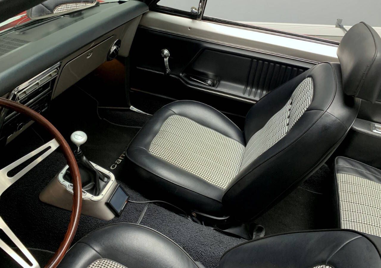 PJ's Auto World is pleased to offer this Pro Touring 1967 Chevrolet Camaro Convertible for Sale. Blue Printed 383 436 Horsepower crate engine (Part #BP38318CTF1), CVF accessory drive, Holley Terminator fuel injection, Griffin aluminum radiator, electric fans, body-off restoration with painted engine bay and underside, VanNatta Fabrication engine bay panels, rack and pinion power steering, built 4L60 overdrive transmission, cold air conditioning, ceramic coated headers, stainless steel dual exhaust with X pipe, TCI subframe adjustable coil over shocks, 4-link rear suspension, QA1 adjustable shocks, 12-bolt posi rearend with 3.36 gears, 4-wheel power disc brakes, 17 American Racing Salt Flat Wheels, beautiful red exterior, Cowl Hood, CVF hood hinges, hideaway headlights, rear deck spoiler, driver's chrome mirror, updated wipers with concealed wiper motor, black canvas convertible top, black Deluxe Houndstooth interior, upgraded front bucket seats, AutoMeter Gauge cluster, Lokar Shifter, Deluxe wood steering wheel, chrome tilt steering column, JVC radio with upgraded sound system. The builder of this car invested years of time, love, and dedication to build this incredible machine! This car has the best parts and was built with an open checkbook. If youre looking for an incredibly Unique and Cool Muscle Car that will turn heads anywhere it goes, let your search stop here! This powerful Classic mixes the best virtues of Modern Hot Rodding with the timeless style of Detroit Muscle. Call us today, and start making memories! With over 45 years of dedicated service to the Collector Car Community, our team is eager to answer any questions you may have. Finance options available and worldwide shipping can easily be arranged. Interesting trade-ins will also be considered.