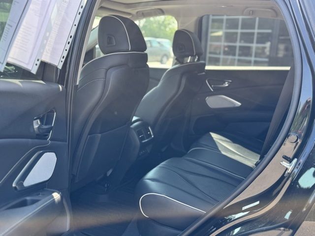 Navigation system: Acura Navigation System with 3D View, 16 Speakers, AM/FM radio: SiriusXM, Premium audio system: ELS Studio, Radio data system, Radio: ELS Studio 3D Premium Audio System, Air Conditioning, Automatic temperature control, Front dual zone A/C, Rear window defroster, Heads-Up Display, Memory seat, Power driver seat, Power steering, Power windows, Remote keyless entry, Steering wheel mounted audio controls, Adaptive suspension, Four wheel independent suspension, Speed-sensing steering, Traction control, 4-Wheel Disc Brakes, ABS brakes, Dual front impact airbags, Dual front side impact airbags, Emergency communication system: AcuraLink, Front anti-roll bar, Knee airbag, Low tire pressure warning, Occupant sensing airbag, Overhead airbag, Rear anti-roll bar, Power moonroof, Power Liftgate, Brake assist, Electronic Stability Control, Lane departure: Lane Keeping Assist System (LKAS) active, Auto High-beam Headlights, Delay-off headlights, Front fog lights, Fully automatic headlights, Panic alarm, Security system, Speed control, Auto-dimming door mirrors, Bumpers: body-color, Heated door mirrors, Power door mirrors, Spoiler, Turn signal indicator mirrors, Apple CarPlay, Auto-dimming Rear-View mirror, Compass, Driver door bin, Driver vanity mirror, Front reading lights, Garage door transmitter: HomeLink, Genuine wood dashboard insert, Genuine wood door panel insert, Heated & Ventilated Front Sport Seats, Heated steering wheel, Illuminated entry, Outside temperature display, Overhead console, Passenger vanity mirror, Rear reading lights, Rear seat center armrest, Tachometer, Telescoping steering wheel, Tilt steering wheel, Trip computer, Front Bucket Seats, Front Center Armrest, Heated front seats, Heated rear seats, Perforated Milano Premium Leather-Trimmed Interior, Power passenger seat, Split folding rear seat, Ventilated front seats, Passenger door bin, Alloy wheels, Wheels: 19' x 8' Medium Alloy Silver Interwoven, Rain sensing wipers, Rear window wiper, Variably intermittent wipers, 4.17 Axle Ratio