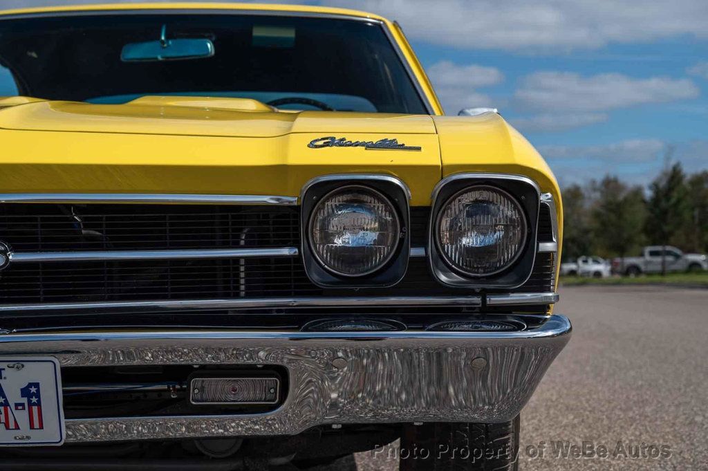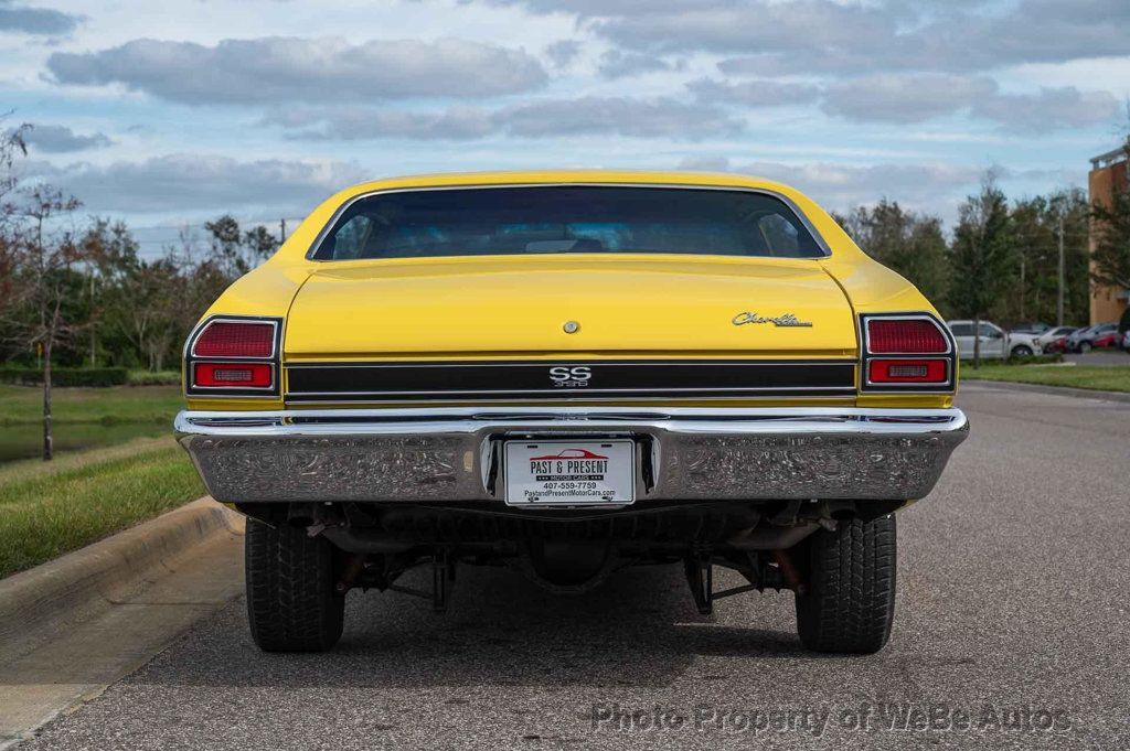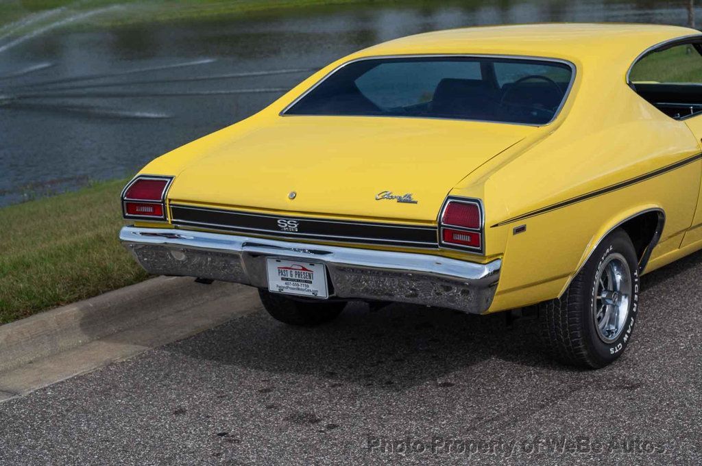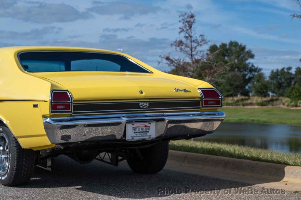 1969 Chevrolet Chevelle SS, Freshly Rebuilt 396 Big Block V8, Freshly Rebuilt Turbo 400 Automatic Transmission, 12 Bolt Posi Traction Rear End Code KF, Newly Installed Vintage Air Conditioning, Tilt Steering Column, True Super Sport confirmed by Color Code 76 Daytona Yellow on the Trim Tag, just completed Restoration finished in June 2024. New Paint in the original color of Daytona Yellow. All New Interior, Tilt Steering Column, Bucket Seats and Center Console, Custom Auto Sound Stereo that has AM/FM/AUX/USB and Bluetooth Capabilities and has Rockford Fosgate Speakers, 14 SS Wheels with White Letter Radial Tires, Dual Exhaust with Headers, Many New Parts, Great Car! While we do our best to provide the highest quality muscle cars with an honest and reliable description and realize the importance of transparency when selling vehicles. That being said, we have not built, modified, changed or personally owned this vehicle. Whether this vehicle is consigned or owned by Past & Present Motor Cars we do not know the vehicles complete history since new. We want to be clear and try to answer any questions our customers might have prior to purchasing. Additionally, we not only welcome but we encourage 3rd party independent inspections. Please inquire prior to purchase to make sure the advertised vehicle has not already been sold. We list our vehicles on multiple websites and a vehicle can sell at any time. If a customer chooses to purchase sight unseen (many of our customers choose this option) the customer accepts the vehicle AS IS and WHERE IS and understands we cannot address concerns after purchase. For this reason, it's important all concerns are addressed prior to purchase. We make every effort to present accurate and reliable information, but use of this information is voluntary, and should only be deemed reliable after an independent review of its accuracy, completeness, and timeliness. It is the sole responsibility of the customer to verify the existence of options, accessories and the vehicle condition before time of sale. Financing is Available with low rates and Vehicle Shipping is available from our Showroom to your Garage. A Classic Car Warranty is Available for Purchase from a 3rd Party. Please speak to our Sales Associate or Company Representative for more information. Our team is working and available anytime by Phone or Text for your convenience at 407-559-7759. Thank you for your interest! WeBe Autos Specializes in Marketing and Advertising Muscle, Classic, Vintage and Specialty Cars. We offer Professional Photography, HD Movies, and Staging that Sells Cars. Let us showcase and sell your specialty car. Please visit our website for more details. Keep in Touch, Michael Runnalls Specialty Car Marketing & Media WeBe Autos Ltd. Long Island, NY 11780 Michael@WeBeAutos.com www.WeBeAutos.com (O)631-339-0399 (C)516-729-2003 Skype: webeautos (F)631-389-2605 - - - Contact Michael Runnalls at 631-339-0399 or Michael@WeBeAutos.com for more information. -