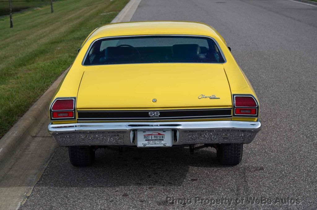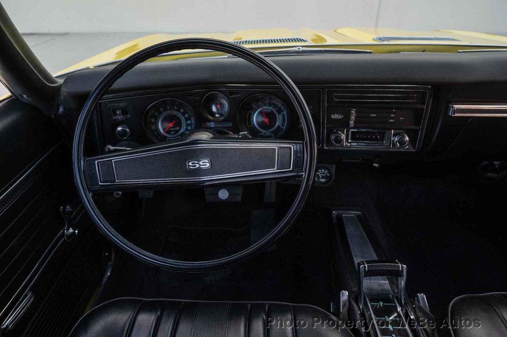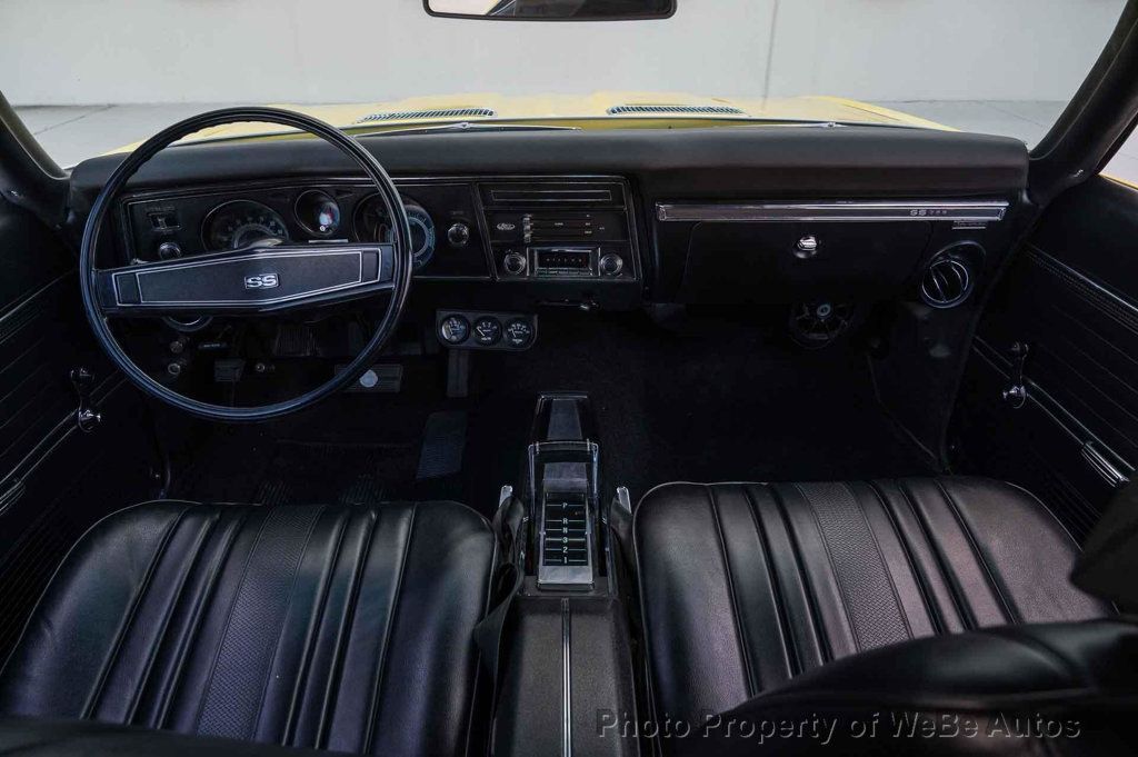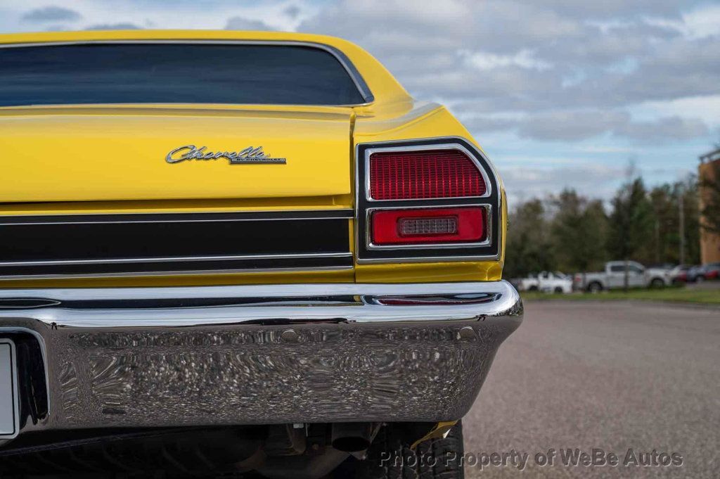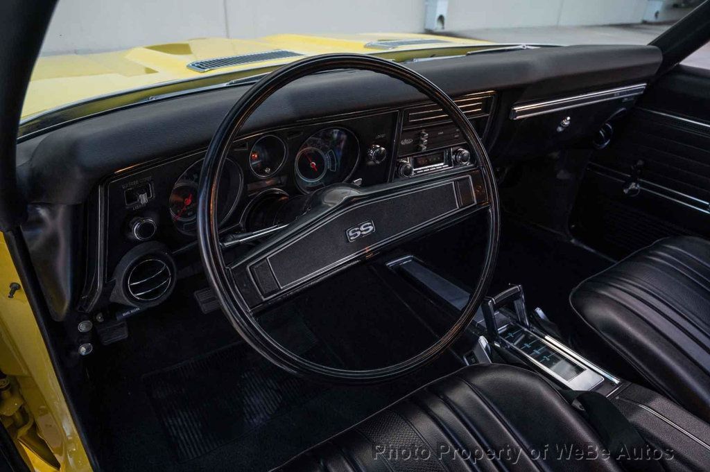 1969 Chevrolet Chevelle SS, Freshly Rebuilt 396 Big Block V8, Freshly Rebuilt Turbo 400 Automatic Transmission, 12 Bolt Posi Traction Rear End Code KF, Newly Installed Vintage Air Conditioning, Tilt Steering Column, True Super Sport confirmed by Color Code 76 Daytona Yellow on the Trim Tag, just completed Restoration finished in June 2024. New Paint in the original color of Daytona Yellow. All New Interior, Tilt Steering Column, Bucket Seats and Center Console, Custom Auto Sound Stereo that has AM/FM/AUX/USB and Bluetooth Capabilities and has Rockford Fosgate Speakers, 14 SS Wheels with White Letter Radial Tires, Dual Exhaust with Headers, Many New Parts, Great Car! While we do our best to provide the highest quality muscle cars with an honest and reliable description and realize the importance of transparency when selling vehicles. That being said, we have not built, modified, changed or personally owned this vehicle. Whether this vehicle is consigned or owned by Past & Present Motor Cars we do not know the vehicles complete history since new. We want to be clear and try to answer any questions our customers might have prior to purchasing. Additionally, we not only welcome but we encourage 3rd party independent inspections. Please inquire prior to purchase to make sure the advertised vehicle has not already been sold. We list our vehicles on multiple websites and a vehicle can sell at any time. If a customer chooses to purchase sight unseen (many of our customers choose this option) the customer accepts the vehicle AS IS and WHERE IS and understands we cannot address concerns after purchase. For this reason, it's important all concerns are addressed prior to purchase. We make every effort to present accurate and reliable information, but use of this information is voluntary, and should only be deemed reliable after an independent review of its accuracy, completeness, and timeliness. It is the sole responsibility of the customer to verify the existence of options, accessories and the vehicle condition before time of sale. Financing is Available with low rates and Vehicle Shipping is available from our Showroom to your Garage. A Classic Car Warranty is Available for Purchase from a 3rd Party. Please speak to our Sales Associate or Company Representative for more information. Our team is working and available anytime by Phone or Text for your convenience at 407-559-7759. Thank you for your interest! WeBe Autos Specializes in Marketing and Advertising Muscle, Classic, Vintage and Specialty Cars. We offer Professional Photography, HD Movies, and Staging that Sells Cars. Let us showcase and sell your specialty car. Please visit our website for more details. Keep in Touch, Michael Runnalls Specialty Car Marketing & Media WeBe Autos Ltd. Long Island, NY 11780 Michael@WeBeAutos.com www.WeBeAutos.com (O)631-339-0399 (C)516-729-2003 Skype: webeautos (F)631-389-2605 - - - Contact Michael Runnalls at 631-339-0399 or Michael@WeBeAutos.com for more information. -