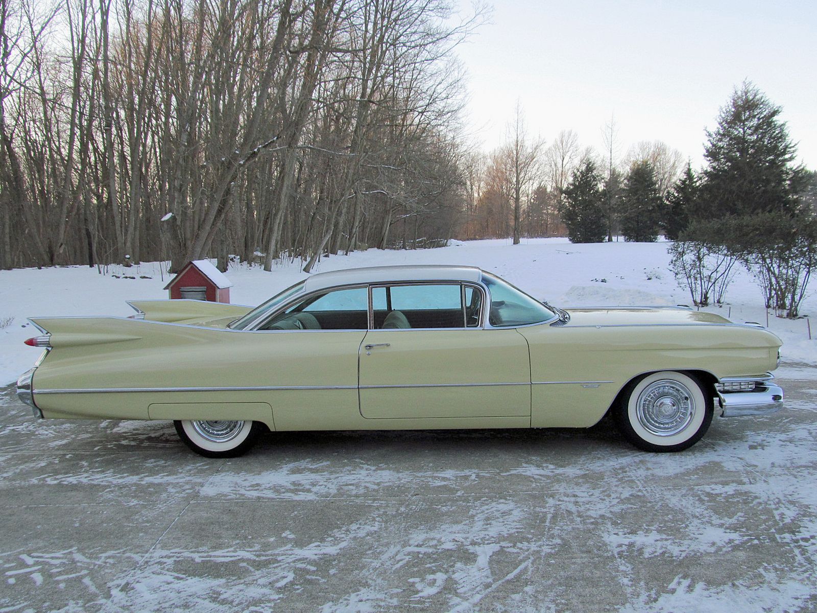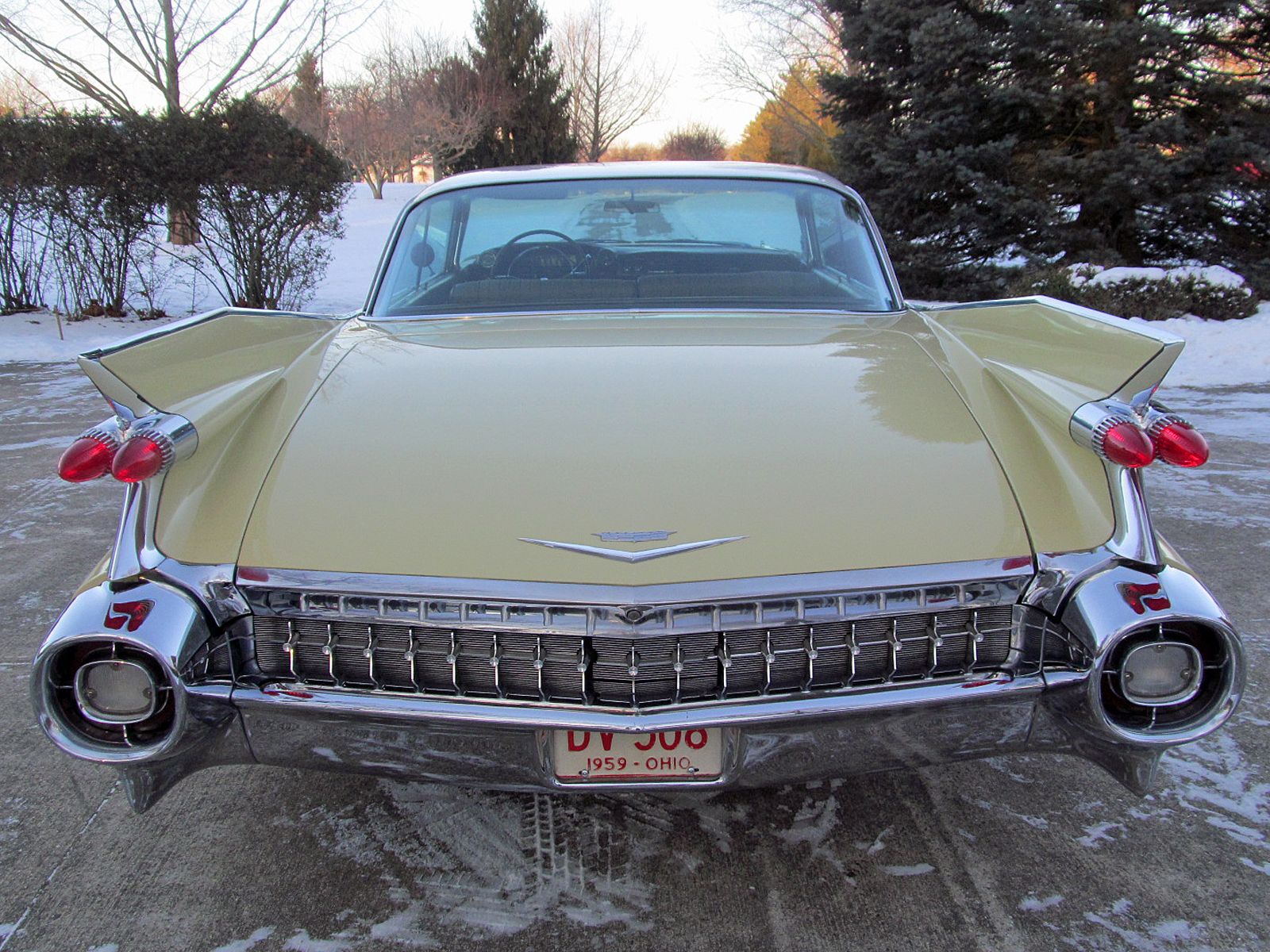 1959 Cadillac Series 62 Coupe. Call Pete or Andy 419-668-1884. The most iconic tailfins ever created! The zenith of jet-age style! Excellent. Style Number 6237. Finished in Color Code Correct number 40 Gotham Gold with Color Code Correct number 12 Dover White roof. The interior is finished in Trim Code Correct number 35 Fawn Mojave Cloth and Fawn Coated Fabric. Numbers Matching Engine, Chassis and Service Tag. Powered by Cadillac’s 390 Cubic Inch V-8 which was rated at 325 horsepower. Dual Exhaust. Hydra-Matic Automatic Transmission. This Cadilac is equipped with lots of great features. Power Windows. Power Steering. Power Brakes. Power Antenna. AM Radio. Clock. Heater / Defroster. Day / Nite Rearview Mirror. Remote Driver Mirror. Rear seat arm rest. E-Z-Eye Tinted Glass. Radial Wide White Wall tires. The Doors even lock and unlock with the key! Ready to Drive, Show and Enjoy. Call Pete or Andy 419-668-1884 BE SURE TO WATCH THE VIDEO!