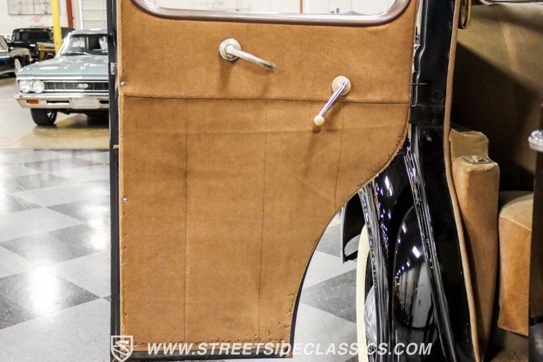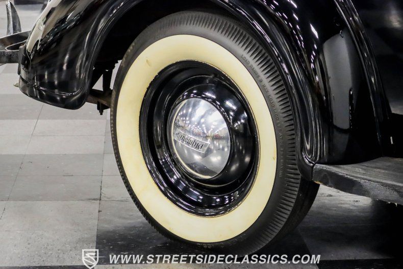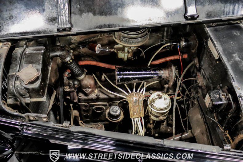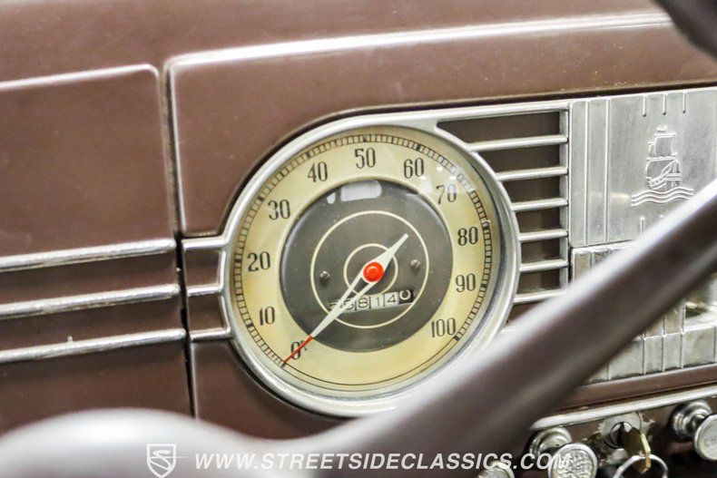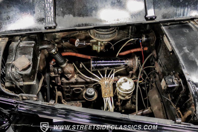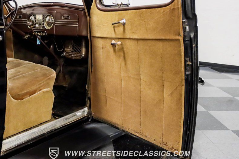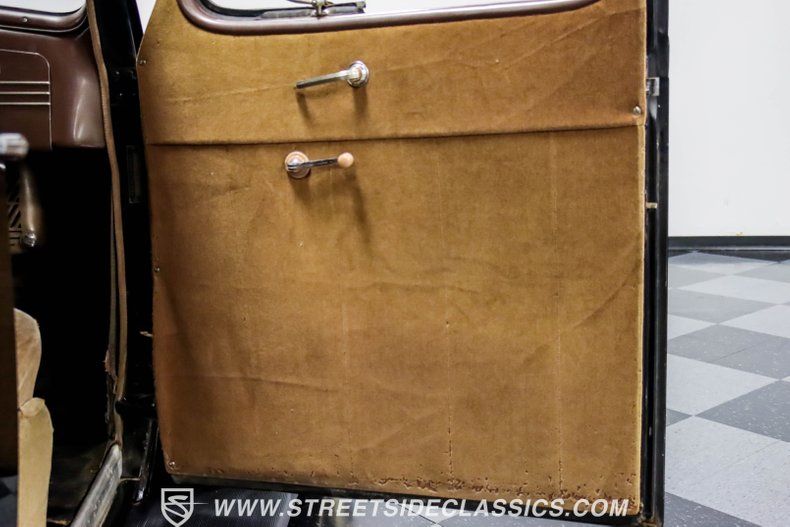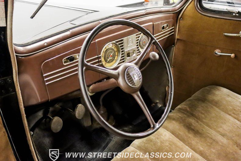 A tan mohair interior creates a refined atmosphere throughout the cabin. Original factory controls and gauges outfit the dash, while the floor-mounted shifter gives easy access to gear changes. The bench seats offer plenty of room, and back seat passengers get added security with seatbelts. An original heater box completes the authentic pre-war cabin layout.