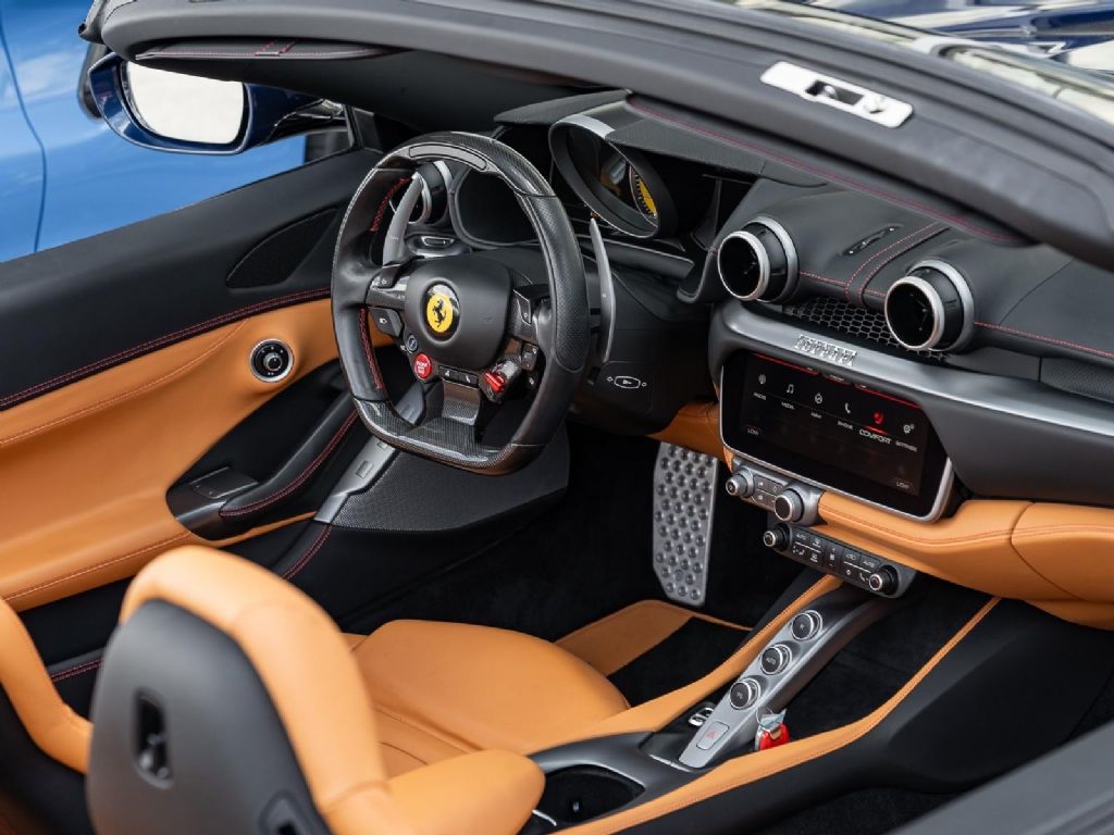 This 2019 Ferrari Portofino finished in elegant Blu Tour de France Metallic over a luxurious Beige Tradizione interior captures the essence of modern Ferrari grand touring. The deep metallic blue exterior flows effortlessly across the Portofino's sculpted bodywork, long hood, and sweeping fastback profile, giving the car a presence that feels both athletic and refined. With the retractable hardtop raised, it presents as a sophisticated coupe, while lowering the roof transforms it into an open air Ferrari experience built for coastal drives and spirited escapes. Inside, the Beige Tradizione leather cabin delivers warmth and craftsmanship, complemented by precision stitching, aluminum accents, and a driver focused layout centered around Ferrari's digital performance interface. Showing only 4,727 miles, this Portofino remains exceptionally well preserved and ready for its next chapter. Power comes from a 3.9 liter twin turbocharged V8 engine producing 591 horsepower and 561 lb ft of torque, paired to a lightning quick 7 speed dual clutch transmission driving the rear wheels. Performance blends refinement with unmistakable Ferrari intensity. The Portofino accelerates from 0 to 60 mph in 3.5 seconds and reaches a top speed of 199 mph, delivering effortless acceleration accompanied by a distinctive Ferrari exhaust note. With a curb weight of 3,664 pounds, the front mid engine layout provides excellent balance, while adaptive suspension, electronic differential control, and advanced traction management systems allow confident handling across a variety of driving conditions. Carbon ceramic braking capability ensures strong stopping performance without sacrificing comfort during daily use. The Ferrari Portofino stands as a true dual personality machine, combining supercar performance with grand touring luxury in a beautifully engineered open top Ferrari designed to be driven and enjoyed. Why BUY from Naples Motorsports Inc.? When you choose this Blu Tour de France Metallic 2019 Ferrari Portofino with 4,727 miles, you are not just buying a used vehicle - you are investing in quality, reliability and peace of mind. Our clientele depend on us for <i>Transparent Pricing, Convenience</i> and, most importantly, <i>Customer FIRST Service!</i>