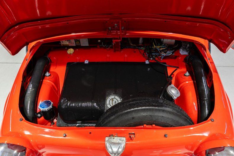 *Air-Cooled 479cc Two-Cylinder *Single Barrel Weber Carburetor *4 Speed Manual Transmission *21 Horsepower *12 Volt Electrical *Wide Whitewall Tires *Coral Red Body by Ghia *Wicker Front and Rear Seating *Red & Eggshell Fringed Surrey Top *AM Radio *70 MPH Speedometer *Odometer Reads: 6,317 Miles