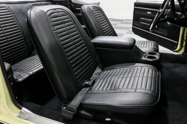Finished in striking yellow, this Firebird stands out with a timeless look, complemented by 17-inch American Racing wheels that add a modern touch to its aggressive stance. Power steering makes cruising easy, while manual brakes with 4-wheel drums keep things true to its original muscle car roots. The Edelbrock carburetor and electronic ignition conversion give the 350 a little extra punch while keeping reliability in check.