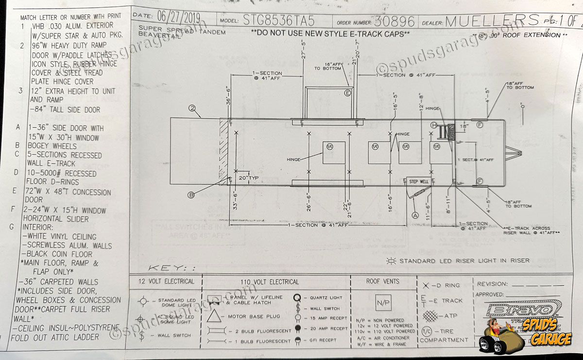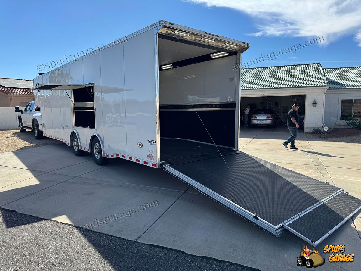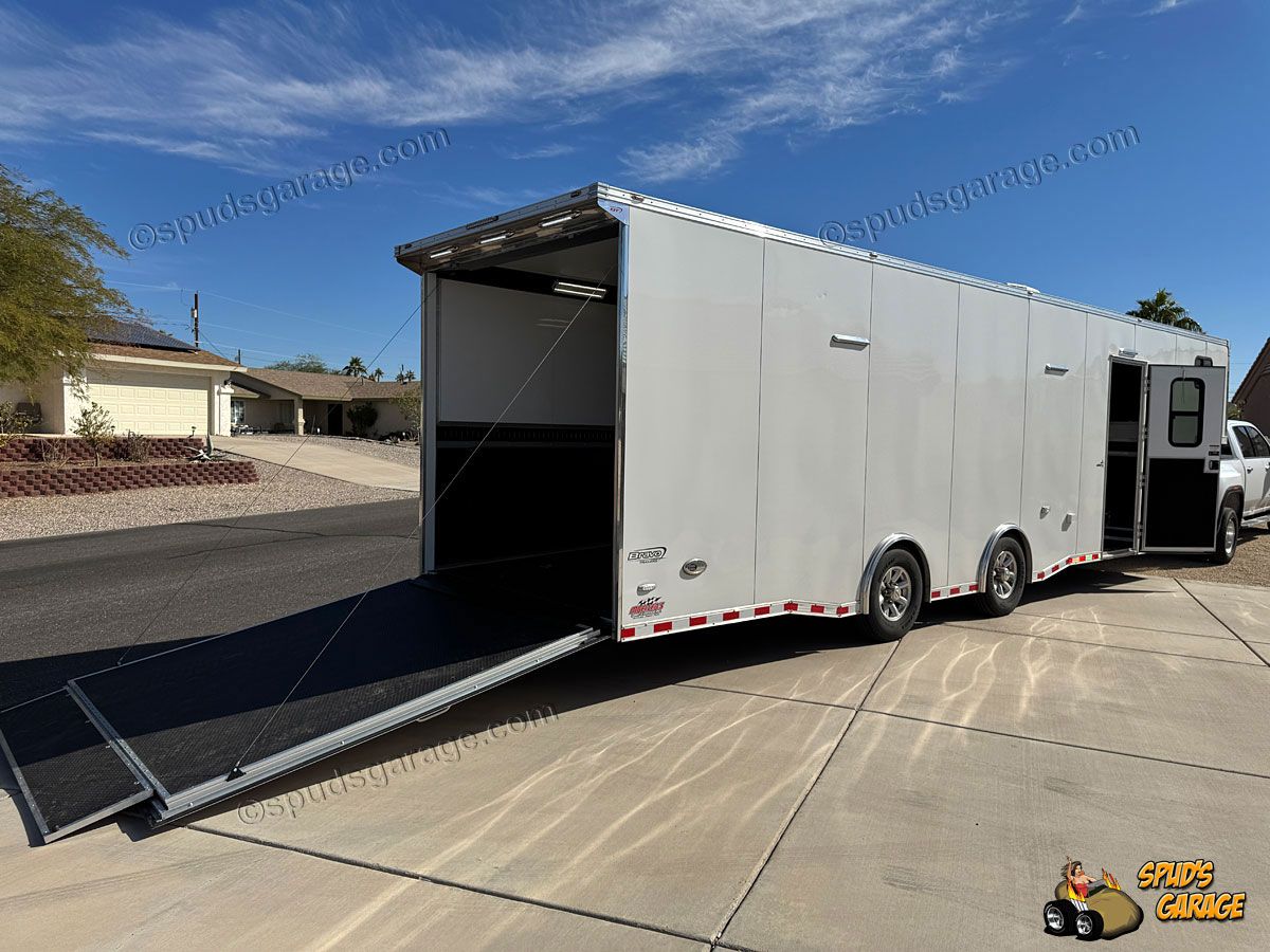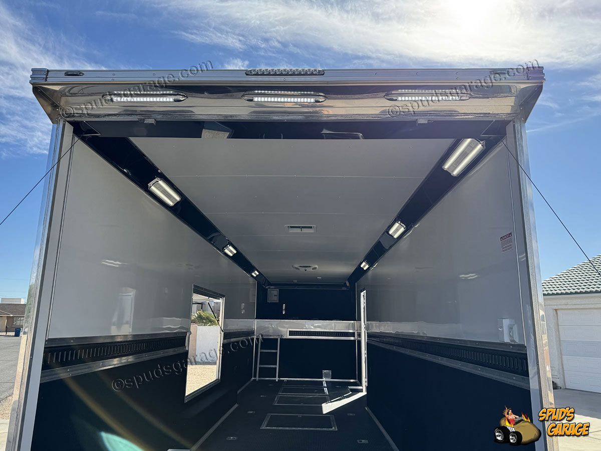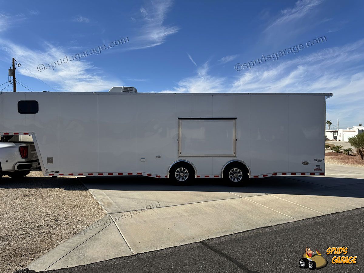 2020 Bravo Super Star 36ft Enclosed Gooseneck Car Trailer, auto-package, Super Star exterior trim package TA, 6+2 forward attic, Super-Spread 7000lb tandem axles 14K GVW, Electric Brakes, Tube Frame, Star Wing 8" roof extension, 12" extra ceiling height, 96" wide w/heavy duty rear deck/ramp, hydraulic landing jacks, extensive LED exterior lighting porch/work/load/etc upgrades, 36" side entry door w/window, 72x48" concession door, (3) floor storage compartments w/spare, interior LED angle lighting, 12/110 electrical package, insulated w/36" carpeted walls, Black Coin vinyl flooring, fold out attic ladder, E-Track wall mounted, 5000# recessed floor D-rings. Owner Upgrades: Air-Conditioning/Heat, Charger, Inverter, Dual Batteries, Power Winch (Limited Use-Like New)