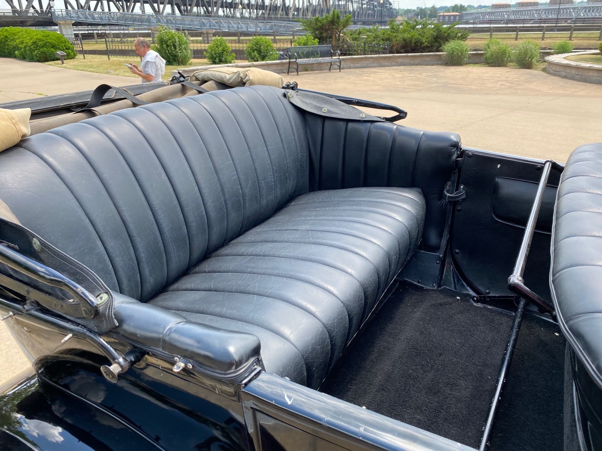 1923 Dodge Brothers Touring Car. Shiny black, good running original 4 cyl, 3 speed manual, nice leather upholstery, wood steering wheel, top needs repaired, rear glass window, side curtains, Monarch accessory spotlight, rear mount spare, original Boyce Moto-meter, Vintage coal footrest heater, 20k miles.