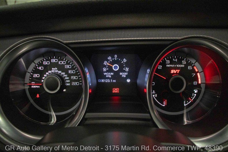 GR Auto Gallery is excited to present this stunning low mile 2014 Ford Mustang GT500 for your consideration. This beast features a sleek black exterior paired with a matching black interior, and it has only 6,123 miles on the odometer. Powering this Mustang GT500 is a supercharged 5.8L V8 engine that produces an impressive 662 horsepower, paired with a 6-speed manual transmission for that exhilarating driving experience. This well-cared-for vehicle has been garage kept and stored, with only two owners and a clean Carfax report. It comes equipped with brand new tires, a grille screen addition, and subframe connectors. Additional features include a premium Shaker audio system, an aluminum hood with air extractor, Le Mans top stripes, GT500 side rocker stripes, Brembo disc brakes, electric power assist steering, SVT-tuned suspension, a carbon fiber drive shaft, an easy fuel capless filler, automatic headlamps, power windows, power locks, and much more. Drive this one out of our showroom or have us assist with shipping it to you anywhere in the United States! Don't hesitate to call us with any questions or for more information.