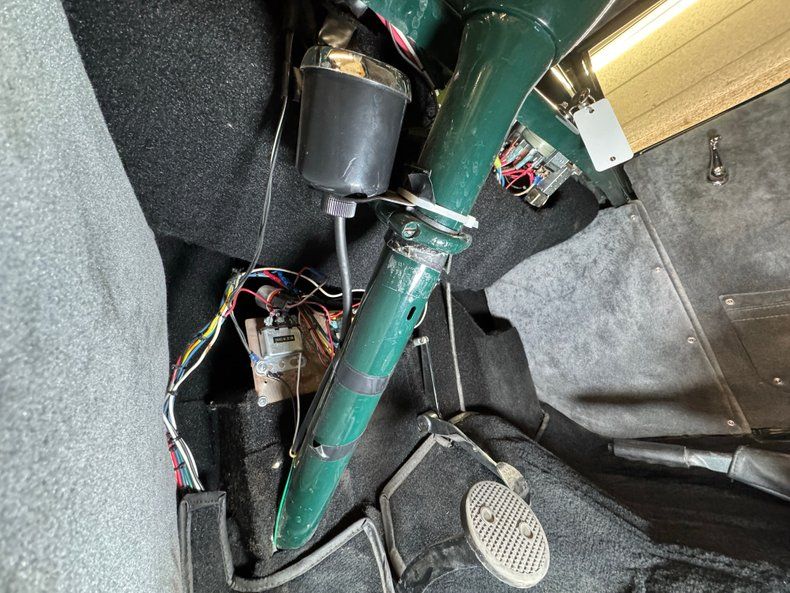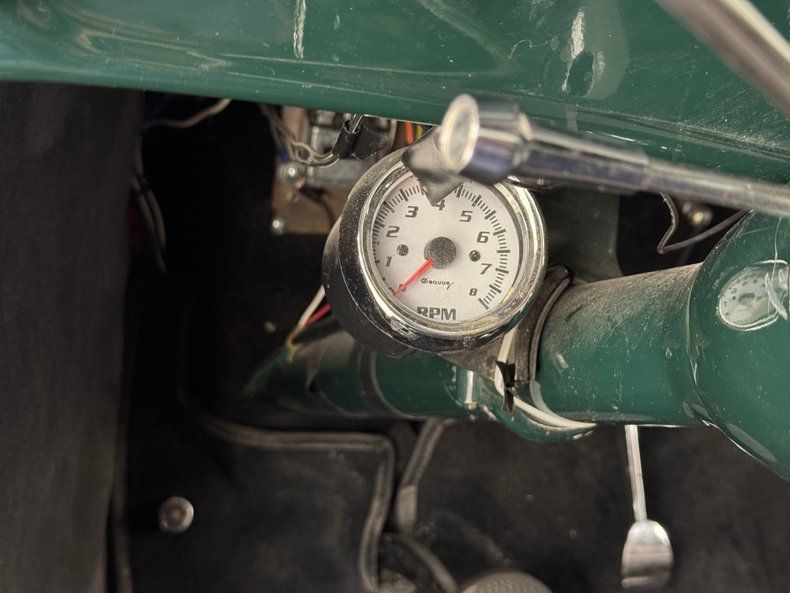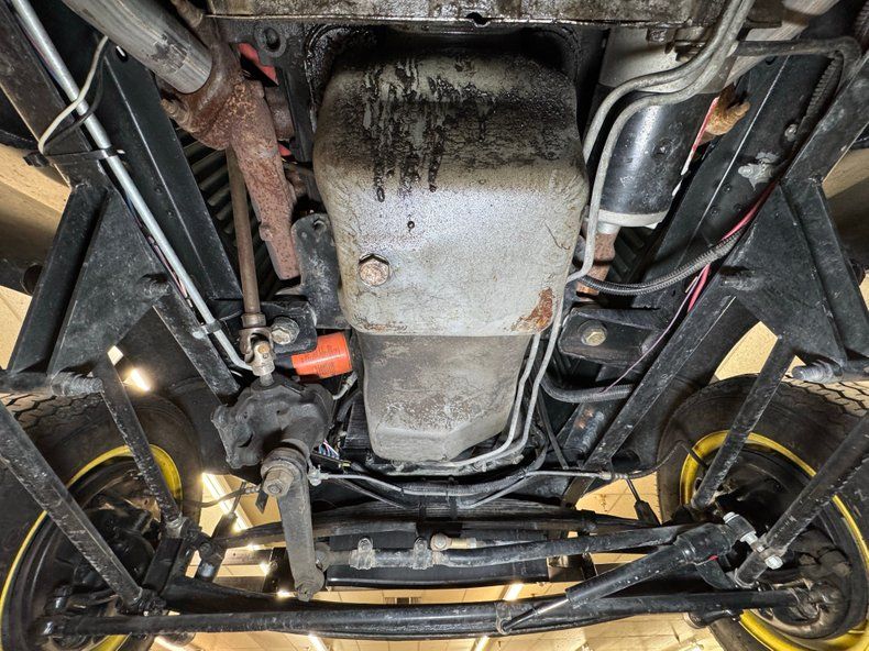 Behind the louvered engine cover sits a 302ci V8 with a Weber 4-barrel carb and a Ford AOD 4-speed automatic transmission sending power to the Ford 8" axle in back. Yes, it's all in the Ford family for this one! A few chrome dress up pieces and bright yellow wires create a showy little powerplant while power brakes provide the stopping energy and they are drums on all four corners.