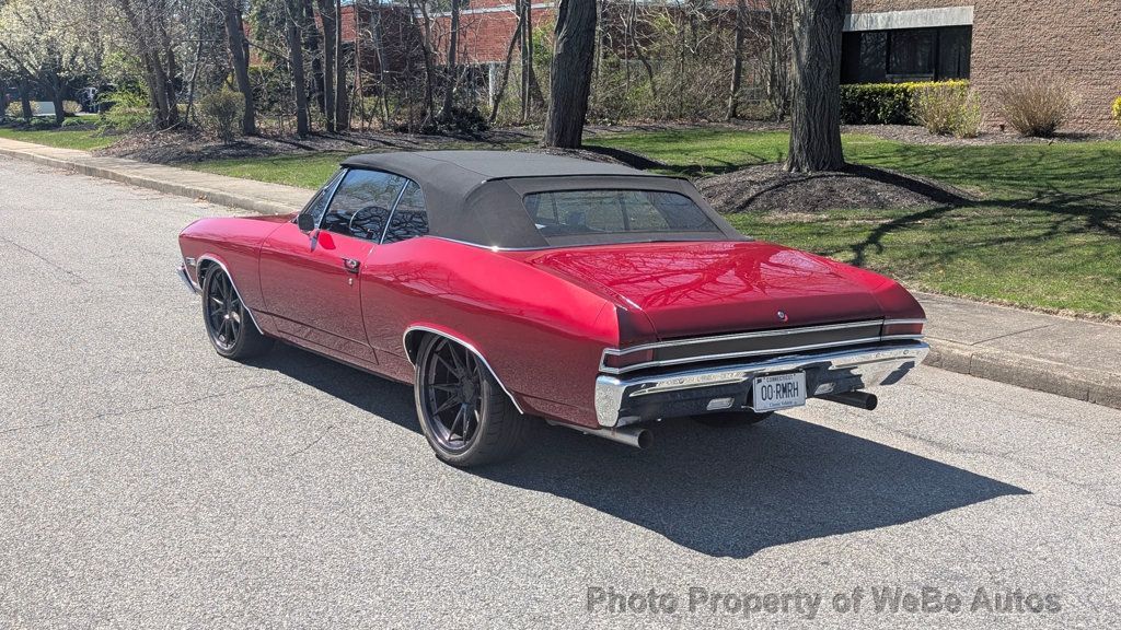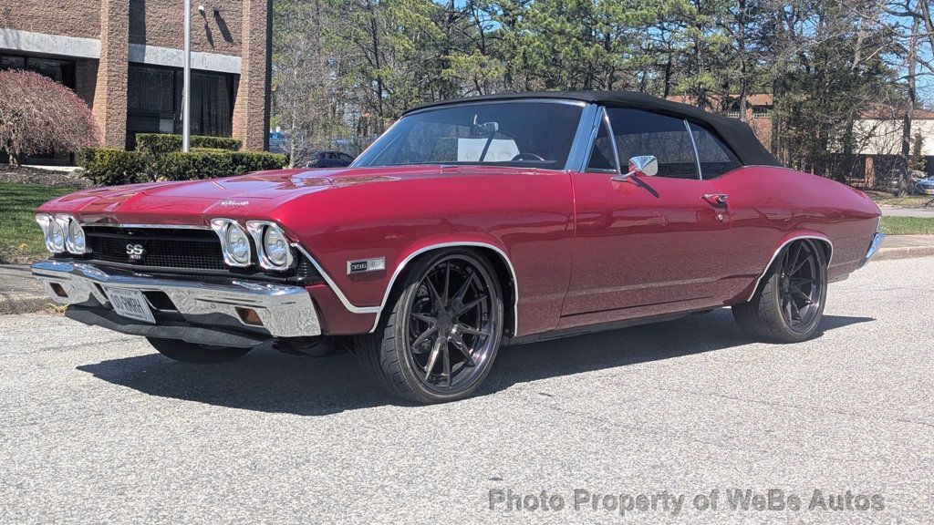 1968 Chevrolet Chevelle SS Pro-Touring Convertible For Sale Just Finished a 3.5 Year Long Frame-Off Restoration with ONLY 235 Miles Lots of LS3 Power on Tap Makes It an Absolute Joy to Drive Looks Absolutely Incredible Inside and Out and Loaded With Great Features Chevy Fuel Injected LS3 Performance Engine with Push Button Start THM 700R4 4-Speed Automatic Transmission Vintage Air Conditioning Serpentine Pulley Setup Aluminum Radiator Paired With Derale Performance Dual Electric Cooling Fans Doug's Ceramic Coated Headers Leading to 3 Mandrel Bent Dual Exhaust System with Black Widow Mufflers, That Throaty Sound is INSANE! Clean Engine Bay Looks Incredible With the Smoothed Firewall Power Steering Wilwood Hydroboost and Power Disc Brakes With Drilled and Slotted Rotors on All Four Corners 12 Bolt Rear End With 3.73 Gears 4-link Rear Suspension With Reinforced Control Arms and a Sway Bar Signature Custom Forged Black Chrome Rims(Nittos 285/35 ZR20 Rear / 245/35 ZR20 Front) Custom Red Pearl Paint With Black Canvas Power Convertible Top New Chrome Bumpers All Polished Trim Led Rear Tail Lights, High Intensity Headlights with Red LED Halo Ring and LED Interior Lighting Beautiful Brand New Black Leather TMI Buckets With Red Contrast Stitching Custom Center Console with Cup Holders Seat Belts All Around 3 Spoke Steering Wheel with a Tilt Steering Column Dakota Digital Gauges Retro Sound System with Bluetooth, USB, AUX, Alpine Speakers, Amps and Sub Woofer New Black Carpeting and Rubber Floor Mats Nicely Refinished Trunk With Battery Undercarriage Looks Great and It's No Exception to the High Quality of Work That's Seen Up Top This Chevelle is New, New...Frame, Floors, Pinch Welds, Rocker Panels, Fuel Tank, Lines, Stainless Steel Brake Lines, Complete Drivetrain, Steering Components, Bushing, Weather Stripping, Glass Etc.. No Expense Spared! For Sale by Owner Located in Ronkonkoma, NY 11779 Follow This Link To TONS of High Resolution Photos: https://photos.app.goo.gl/piwZfDvv24Aa B11w8 Take A L@@K At The Video On YouTube: https://youtu.be/kdbdBjr6neo WeBe Autos Specializes in Marketing and Advertising Muscle, Classic, Vintage and Specialty Cars. We offer Professional Photography, HD Movies, and Staging that Sells Cars. Let us showcase and sell your specialty car. Please visit our website for more details. Keep in Touch, Michael Runnalls Specialty Car Marketing & Media WeBe Autos Ltd. Long Island, NY 11780 Michael@WeBeAutos.com www.WeBeAutos.com (O)631-339-0399 (C)516-729-2003 Skype: webeautos (F)631-389-2605 - - - Contact Michael Runnalls at 631-339-0399 or Michael@WeBeAutos.com for more information. -
