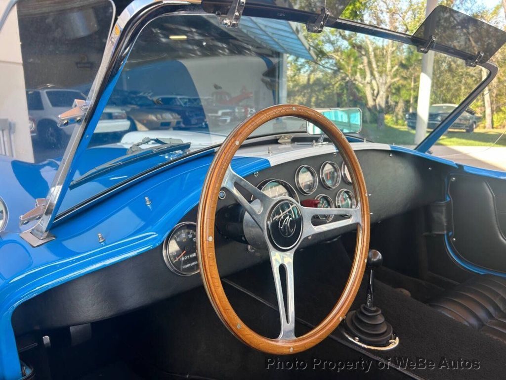 1965 Ford Shelby Unique Motorworks 427 Factory Built By Unique Motorcars For Sale Titled as a 1965 Ford Shelby Unique Motorworks 427 Cubic Inch Stroked to a 462 Cubic Inch Performance Engine Aluminum Intake Performance Carburetor Ford Cobra Aluminum Valve Covers Aftermarket Spark Plug Wires Open Element Air Cleaner Exhaust Headers Leading Out to Side-pipes External Oil Filters Ford T-10 4 Speed Transmission 3.55 Posi Rear End Wilwood Disc Brakes Jaguar Independent Rear Suspension Custom Frame Tubular A-Arms External Oil Filters Carrera Adjustable Coil Overs Black Leather Bucket Seats Center Tunnel Black Door Panels Full Complement of Stewart Warner Gauges Wood/Polished Sport Steering Wheel Simpson Racing Seat Belts Single Loop Chrome Roll Bar Floor Shifter Black Carpet Unique Cobra Floor Mats Ford Grabber Blue Paint With Painted White Stripes Covering the Iconic Cobra Body Flared Fenders Shelby Hood Scoop, Side Vents, Chrome Trim Chrome Front and Rear Racing Bumper/hooks 427 Shelby Cobra Badging LED Tail Lights Correct Cobra Windshield With Correct Wing Glass Snap on Cockpit Cover Moroso Kill Switch Compumotive Wheels Black Sidewall Fat Tires All Around The owner states it cost over $150,000 to build this Shelby street machine This 1965 Ford Shelby Unique Motorworks is powered by a high-performance Ford 427 cubic inch performance engine that has been stroked to 462 cubes. It has many go-fast goodies including an aluminum intake, Holley performance carb, Ford Cobra aluminum valve covers, aftermarket spark plug wires, open element air cleaner, exhaust headers leading out to side-pipes, external oil filters, a Ford T-10 4-speed transmission, and a 3.55 posi rear end. The engine is supported by a Jaguar independent rear suspension in the custom frame with the front end having tubular A-arms, Carrera adjustable coil overs, while it rides on Compumotive wheels and black sidewall fat tires all around. Interior The interior looks brand new, and when you ease yourself down into the custom-designed black leather bucket seats, you will find that they are very comfortable for long drives, and you will never want to get out. You have plenty of legroom to stretch out your legs and will also admire the full wrap- around interior that has a center tunnel, black door panels, a full complement of Stewart Warner gauges, wood/polished sport steering wheel, Simpson racing seat belts, single loop chrome roll bar, floor shifter, black carpet, and Unique Cobra floor mats. Exterior The beautiful 1965 Ford Shelby Unique Motorworks has new Ford Grabber Blue paint with painted white stripes covering the iconic Cobra body with flared fenders that give it that aggressive stance. Other highlights include the Shelby hood scoop, side vents, chrome trim, chrome front and rear racing bumper/hooks, and 427 Shelby Cobra badging. In almost brand-new condition With its big-block Ford 462 cubic inch engine, performance chassis, and 4-speed transmission, it will give you the ride of your life and is a must-have that any collector needs in his stable to finish his collection. Located in Bradenton, FL 34212 Take A L@@K At The Video On YouTube: https://youtu.be/CX1tDImohKk?si=XOmgh7x4EX6Uu3_y WeBe Autos Specializes in Marketing and Advertising Muscle, Classic, Vintage and Specialty Cars. We offer Professional Photography, HD Movies, and Staging that Sells Cars. Let us showcase and sell your specialty car. Please visit our website for more details. Keep in Touch, Michael Runnalls Specialty Car Marketing & Media WeBe Autos Ltd. Long Island, NY 11780 Michael@WeBeAutos.com www.WeBeAutos.com (O)631-339-0399 (C)516-729-2003 Skype: webeautos (F)631-389-2605 - - - Contact Michael Runnalls at 631-339-0399 or Michael@WeBeAutos.com for more information. -