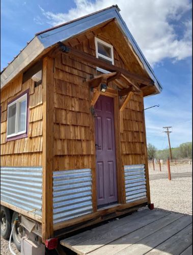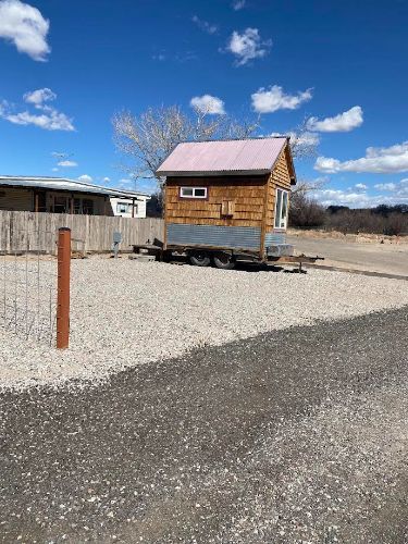 2018 8X12 120 Square Foot Tiny Home 8x12, 120 Square Foot Tiny Home, a cozy and well-designed space perfect for minimalist living or as a unique vacation spot. Nestled next to the Rio Grande, this charming tiny home offers comfort for one but can sleep two with a queen bed in the sleeping loft, accessible via a sturdy telescoping ladder. The space includes a compact kitchen equipped with essentials, including a 2-burner stovetop and air fryer, making meal prep easy and convenient. Overhead pots and pans are within reach, so you can whip up a quick meal while enjoying the warmth of the electric fireplace that doubles as a cozy remote workspace. Relax on the loveseat and stream your favorite shows on the Roku TV, or unwind with a walk along 17 scenic acres by the Rio Grande where you might catch a glimpse of local roadrunners or reel in fresh trout for dinner. The sleeping loft is a tranquil retreat, featuring a comfortable queen bed and a skylight overhead, perfect for stargazing as you drift off to sleep. The bathroom is fully functional, featuring a flush toilet (a nice touch compared to composting options) and a shower with endless on-demand hot water, adding a touch of luxury to your tiny home experience. Step outside onto the small deck and enjoy a meal prepared on the charcoal grill, ideal for true BBQ enthusiasts. Please note that the sleeping loft is accessible only via ladder, which requires good mobility and dexterity. The telescoping ladder is rated for up to 330 pounds and locks securely in place when in use; safety instructions are provided to ensure proper use. Whether youre looking for a serene place to live, a unique remote work setup, or a quiet retreat by the river, this tiny home offers everything you need in a compact and thoughtfully designed space. Located in Belen, NM 87002 For more information, please call 833-265-6113 and mention ID 231172 B
