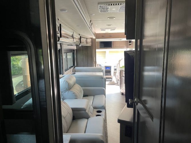 2022 Holiday Rambler Vacationer 33C Like new class A motorhome. Well-maintained unit. Stored indoors. The auto level system, 4 TVs, satellite, and Wi-Fi capability. Residential refrigerator, 3 burner cooktop, oven, and convection microwave. Electric fireplace. Reclining theater seats, and much more. Full Body Paint in Blues, Grays, and Silvers; Backup and Side Cameras; Dual Roof Air Units with Heat Pump; Corian Counters; Cherry Woodwork; Dinette with Booth, Sofa Sleeper Electric Steps, Two Slide Outs, Electric Awnings, Onan Generator, Inverter, Too Many Options to List. Located In Sheboygan, WI 53083 For More Information, Call 833-265-6113. Mention Customer ID # 68101113
