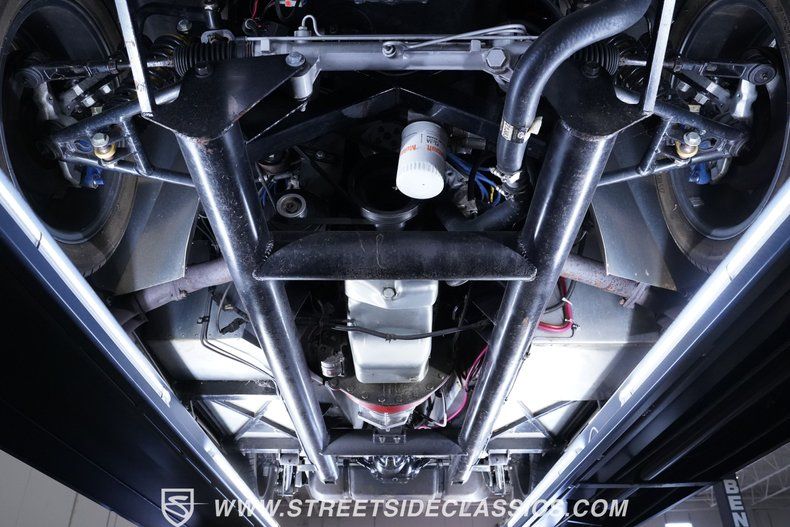 Generating massive power is a supercharged 5.0L V8 engine connected to a Borg Warner T5 5-speed manual transmission. Performance modifications include a BBK Power Plus 70mm supercharger, MSD ignition, BBK throttle body, aftermarket intake, aluminum intake manifold, and BBK shorty headers. An aluminum radiator with electric fan keeps temperatures controlled. The suspension consists of independent double wishbones up front and a coilover/trailing arm setup in back. Four-wheel disc brakes bring everything to a stop.