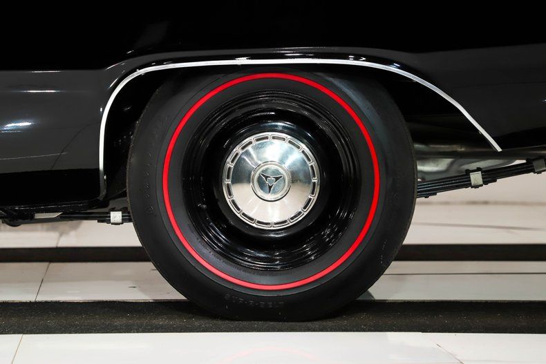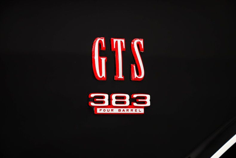 EXTERIOR: Stunning! That beautiful glass finish black paint without a vinyl top and all the nice red accents really looks incredible. You walk up to the car, and it looks like a black mirror. The body is arrow straight and the gaps are really nice. It has the GTS bulged hood with the red accents in the chrome trim, I also love the GTS 383 emblems with red and of course the red bumblebee stripe really puts it over the top. Everyone loves the round marker lights of '68 too. It looks like the chrome has been redone and the stainless trim is very nice. It has dual mirrors and correct antenna. The windshield looks new, weatherstrips have been replaced. It's sitting on a set of reproduction Wide Oval Redline tires with gloss black rims and the poverty hubcaps.