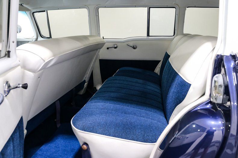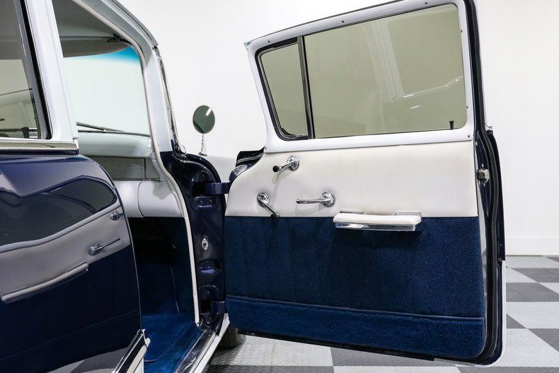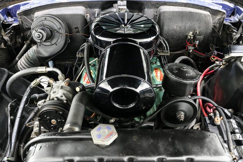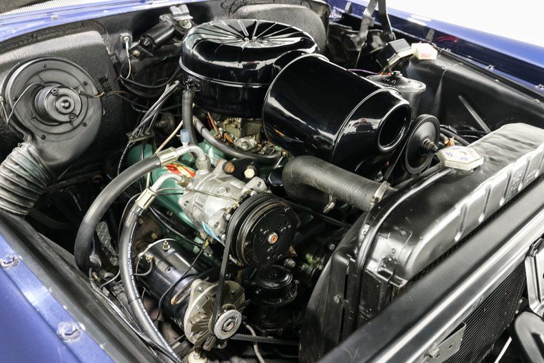 Finished in a striking shade of blue, the exterior keeps its classic charm with original hubcaps wrapped in Coker Classic wide whitewalls. Inside, the blue and white interior screams mid-century Americana. The Painless wiring harness keeps things reliable, while Vintage Air underdash A/C brings modern comfort without spoiling the look. Power steering and power brakes add welcome ease behind the wheel.