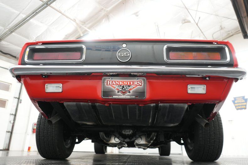 THIS VEHICLE IS LOCATED IN OUR PA. SHOWROOM, FREE SHIPPING AND WARRANTY !!!!! Numbers Matching 396cid Big Block Chevrolet Engine. Turbo 400 Automatic Transmission. Power Steering. Front Drum Brakes. Rear Drum Brakes. 15 Inch Wheels. Front Tires: 225/60/15. Rear Tires: 245/60/15. Rally Wheels w/ Beauty Rings & Center Caps. GM 12 Bolt Rear End. POSI Rear End. 3.23 Gear Ratio. Stock Cast Intake. Edelbrock 4 Barrel Carburetor. Electric Choke. HEI Distributor. HEI Coil. Mechanical Fuel Pump. Accel Super Stock 8mm Plug Wires. Stock Style Radiator. 6 Blade Cooling Fan. Bolero Red Exterior. Correct Color. White Nose Stripe. SS Hood. Hide A Way Headlights. Front Air Dam. Chrome Front & Rear Bumpers. Bright Wheel Lip Moldings. Bright Rocker Moldings. Bright Drip Rail Moldings. Bright Window Trim. Driver Side Mirror. Black Deluxe Interior. Front Bucket Seats. Center Console. Floor Shifter. Factory 120mph Speedometer. Factory AM Radio. Front Seat Belts. Black Door Panels. Black Carpeting. Black Headliner. Black Dash. Chrome Valve Covers. Finned Aluminum Rear Differential Cover. Monoleaf Rear Suspension. Frame Connectors. Rear Torque Link. 3/4" Front Sway Bar. Long Tube Headers. 2 1/4" Dual Exhaust. Flowmaster Style Mufflers. Driveshaft Loop. Real RS SS.