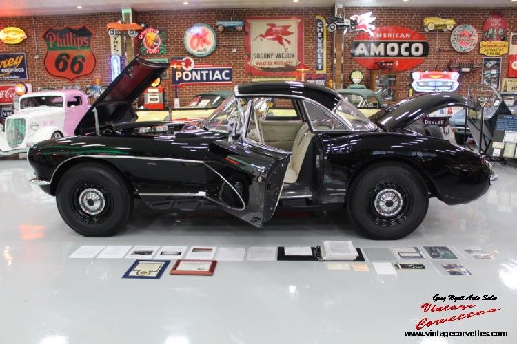 1957 Corvette Onyx Black (1 of 11 ) Maybe 1 of 3 cars, Ivory Interior, Black Soft Top, All Correct born with 283-270Hp, 3 Speed, 3.70 Rear, Off Road Exhaust, 5.5 Inch Wheels, Radio Delete, Both Tops, Accessory Column Mounted Tachometer (579E), Frame off restoration, 32k Miles Believed to be Correct, Bloomington Gold, NCRS Second Flight, 3 Owner car with paperwork Title copies, Believed the car was Drag Raced back in the 60s with some History. Photos and History and Owners back to 1968. Special Detailed Report on car from Roy Sinor. Great Color for 1957 Corvette. Trades Considered www.vintagecorvettes.com Call 706 857-3916 or 706 506-5745
