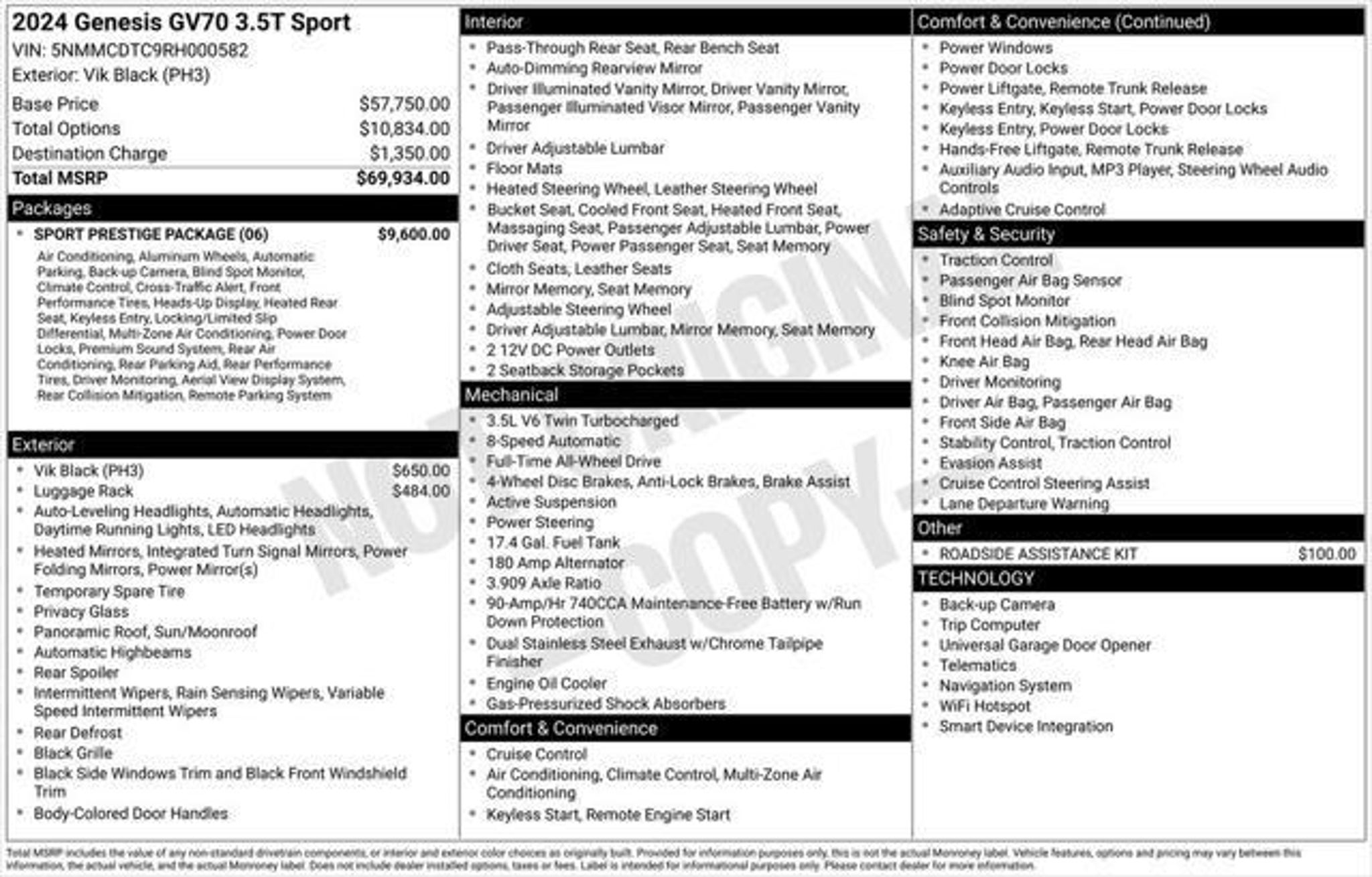 Odometer is 7193 miles below market average! ** OIL CHANGES FOR LIFE!! With purchase or lease of your New, Pre-Owned or Certified Pre-Owned Hyundai purchased or leased from Wayne Automall Hyundai; to be done with dealer recommended services, must be done at Wayne Automall Hyundai Service Center only. Not available on prior sales; not available on Diesels, SVTs, Performance or Commercial vehicles. ** Vik Black 2024 Genesis GV70 3.5T Sport AWD 8-Speed Automatic with SHIFTRONIC 3.5L DOHC Don't wait until it is too late! Call today to schedule an appointment. REST ASSURED every vehicle at Wayne Automall Hyundai has been hand selected by our Owner & Management. Each vehicle is put through a multi-point inspection by our factory certified technicians. After your future vehicle leaves our certified shop, it is fully detailed in our centralized recon shop and delivered just like new. With the Performance Auto Group - You CAN buy with confidence! We would love the opportunity to earn your business "“ ASK US ABOUT OUR OIL CHANGES FOR LIFE! Price(s) include(s) all costs to be paid by a consumer, except for licensing costs, registration fees and taxes.