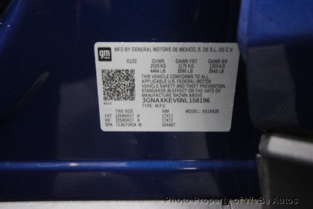 2022 Chevrolet Equinox LT LT 1.5L DOHC 6-Speed Automatic Electronic with Overdrive FWD SUV Blue Glow MetallicCARFAX One-Owner.NEARLY NEW - 150 Pt Inspection - 3 Month Powertrain Warranty - Certified Service Contracts.26/31 City/Highway MPG17 Aluminum Wheels, 2 Rear USB Charging-Only Ports, 2 USB Ports & Auxiliary Input Jack, 2-Way Power Driver Lumbar Control Seat Adjuster, 3-Spoke Leather-Wrapped Steering Wheel, 3.50 Final Drive Axle Ratio, 4-Wheel Disc Brakes, 6 Speaker Audio System Feature, 6 Speakers, 8-Way Power Driver Seat Adjuster, ABS brakes, Air Conditioning, Alloy wheels, AM/FM radio: SiriusXM, Auto High-beam Headlights, Bluetooth For Phone, Brake assist, Bumpers: body-color, Compass, Confidence & Convenience Package, Custom Molded Front & Rear Splash Guards (LPO), Delay-off headlights, Driver Confidence II Package, Driver Convenience Package, Driver door bin, Driver vanity mirror, Dual front impact airbags, Dual front side impact airbags, Dual Zone Automatic Climate Control, Electronic Stability Control, Emergency communication system: OnStar and Chevrolet connected services capable, Four wheel independent suspension, Front & Rear Park Assist, Front anti-roll bar, Front Bucket Seats, Front Center Armrest, Front Passenger 4-Way Manual Seat Adjuster, Front reading lights, Fully automatic headlights, Heated door mirrors, Heated Driver & Front Passenger Seats, Illuminated entry, Lane Change Alert with Side Blind Zone Alert, Low tire pressure warning, Not Equipped with Driver & Fr Pass Heated Seats, Occupant sensing airbag, Outside temperature display, Overhead airbag, Overhead console, Panic alarm, Passenger door bin, Passenger vanity mirror, Power door mirrors, Power driver seat, Power steering, Power windows, Preferred Equipment Group 1LT, Premium audio system: Chevrolet Infotainment 3, Premium Cloth Seat Trim, Radio data system, Radio: Chevrolet Infotainment 3 System with AM/FM, Rear anti-roll bar, Rear Cross Traffic Alert, Rear Power Liftgate, Rear reading lights, Rear seat center armrest, Rear window defroster, Rear window wiper, Remote keyless entry, Remote Start, Security system, SiriusXM Radio, Speed control, Speed-sensing steering, Split folding rear seat, Spoiler, Steering wheel mounted audio controls, Tachometer, Telescoping steering wheel, Tilt steering wheel, Traction control, Trip computer, Variably intermittent wipers, Wireless Apple CarPlay/Wireless Android Auto. WeBe Autos Specializes in Marketing and Advertising Muscle, Classic, Vintage and Specialty Cars. We offer Professional Photography, HD Movies, and Staging that Sells Cars. Let us showcase and sell your specialty car. Please visit our website for more details. Keep in Touch, Michael Runnalls Specialty Car Marketing & Media WeBe Autos Ltd. Long Island, NY 11780 Michael@WeBeAutos.com www.WeBeAutos.com (O)631-339-0399 (C)516-729-2003 Skype: webeautos (F)631-389-2605 - - Air Conditioning, Climate Control, Cruise Control, Tinted Windows, Power Steering, Power Windows, Power Mirrors, Heated Seat, Phone, Tachometer, Digital Info Center, Tilt Steering Wheel, Steering Wheel Radio Controls, Driver Airbag, Passenger Airbag, Side Airbags, Keyless Entry, Security System, ABS Brakes, Traction Control, Dynamic Stability, Rear Defogger, Intermittent Wipers, AM/FM, Cloth Interior Surface, Preferred Equipment Group 1LT, 3.50 Final Drive Axle Ratio, Premium Cloth Seat Trim, Confidence & Convenience Package, Driver Confidence II Package, Driver Convenience Package, Custom Molded Front & Rear Splash Guards (LPO), Remote Start, 8-Way Power Driver Seat Adjuster, Front Passenger 4-Way Manual Seat Adjuster, 2-Way Power Driver Lumbar Control Seat Adjuster, Heated Driver & Front Passenger Seats, 3-Spoke Leather-Wrapped Steering Wheel, Rear Power Liftgate, SiriusXM Radio, Front & Rear Park Assist, Rear Cross Traffic Alert, Lane Change Alert with Side Blind Zone Alert, 2 Rear USB Charging-Only Ports, 2 USB Ports & Auxiliary Input Jack, 6 Speaker Audio System Feature, 4-Wheel Disc Brakes, 6 Speakers, Front Bucket Seats, Front Center Armrest, Spoiler, Brake assist, Bumpers: body-color, Delay-off headlights, Driver door bin, Driver vanity mirror, Dual front impact airbags, Dual front side impact airbags, Four wheel independent suspension, Front anti-roll bar, Front reading lights, Fully automatic headlights, Heated door mirrors, Illuminated entry, Low tire pressure warning, Occupant sensing airbag, Outside temperature display, Overhead airbag, Overhead console, Passenger door bin, Passenger vanity mirror, Power door mirrors, Power driver seat, Radio data system, Rear anti-roll bar, Rear reading lights, Rear seat center armrest, Rear window wiper, Split folding rear seat, Telescoping steering wheel, Compass, Primary LCD size: 7.0, Auto High-beam Headlights, Emergency communication system: OnStar and Chevrolet connected services capable, Premium audio system: Chevrolet Infotainment 3, Wireless Apple CarPlay/Wireless Android Auto 12v Power Outlet, Center Arm Rest, Child Proof Door Locks, Daytime Running Lights, Heated Mirrors, OnStar, Overhead Console, Rear Spoiler, Rear Spoiler, Rear Wipers, Remote Start, Reverse Camera, Roll Stability Control, Tire Pressure Monitor, Vanity Mirrors - Contact Michael Runnalls at 631-339-0399 or Michael@WeBeAutos.com for more information. -
