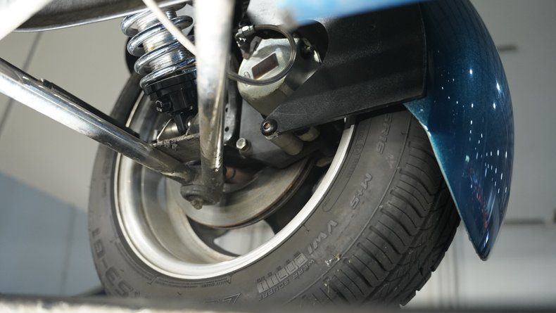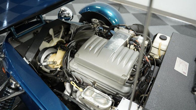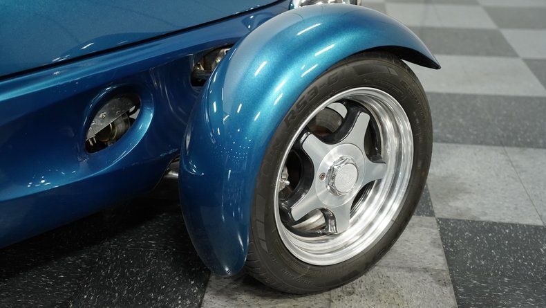 Extremely rare and visually stunning, this 1993 Panoz Roadster ranks among the most exclusive American sports cars ever built. Finished in captivating Reef Blue metallic, this hand-built marvel represents one of just 44 original roadsters ever sold. The sleek, curvaceous bodywork showcases pure automotive artistry with its low-slung profile and flared fenders. A black canvas soft top provides open-air versatility while contrasting beautifully against the vibrant blue finish. The minimalist front end and sculpted rear combine for a truly distinctive silhouette, complemented by 16-inch wheels wrapped in 205/55R16 front and 245/50R16 rear tires for an aggressive stance.