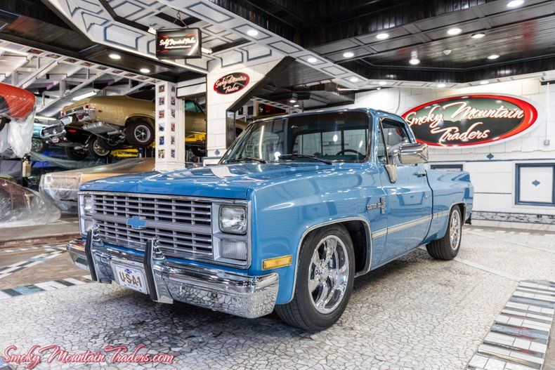This beautifully restored 1984 Chevrolet C10 is a standout classic truck, finished in an eye-catching Light Blue Metallic paint that shines from every angle. The bed is coated in a matching color-matched bedliner, giving it a clean and cohesive look. Sitting on a set of staggered Billet Pro Wheels (18x8 front, 18x10 rear) with brand-new tires, this C10 has the perfect lowered stance that enhances its aggressive yet classic profile. The exterior features excellent chrome and stainless trim, crystal-clear glass, and a strong overall presentation that makes it cruise in ready.