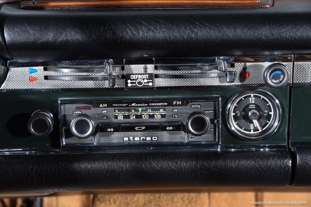 Inside, the cabin showcases period-correct details, including the original Becker Mexico AM/FM/Cassette stereo, offering a touch of vintage luxury and entertainment. The restoration has preserved the authenticity of the car, with meticulous attention to detail evident throughout the interior and exterior finishes.